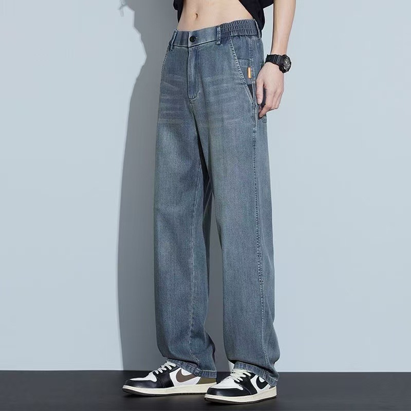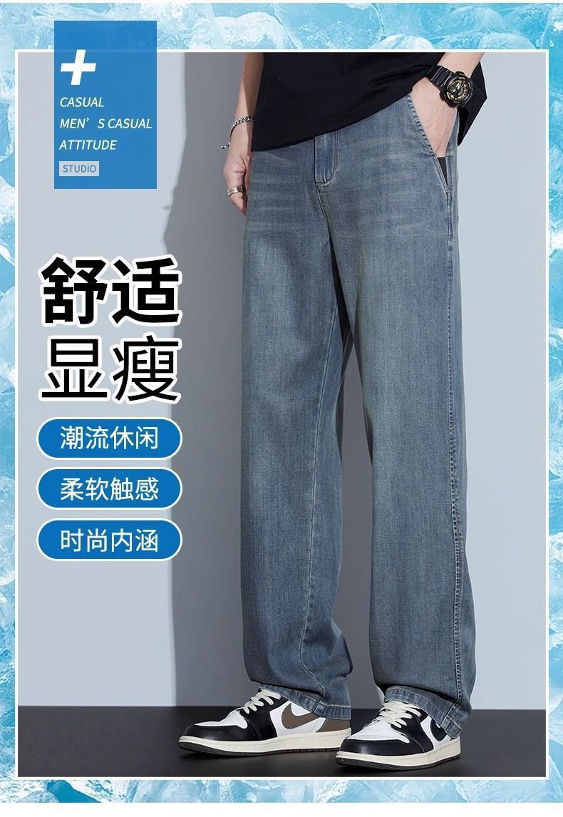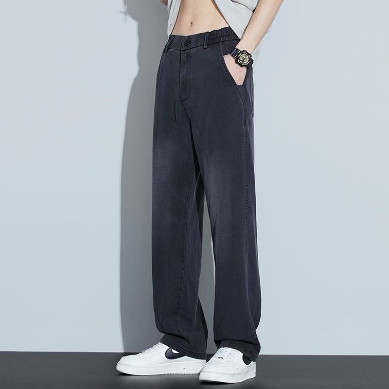 2025 남성용 뉴 아메리칸 레트로 스트레이트 청바지, 루즈하고 드레이프한 와이드 레그 캐주얼 팬츠, 남성용 심플 워싱 팬츠스토어 가기