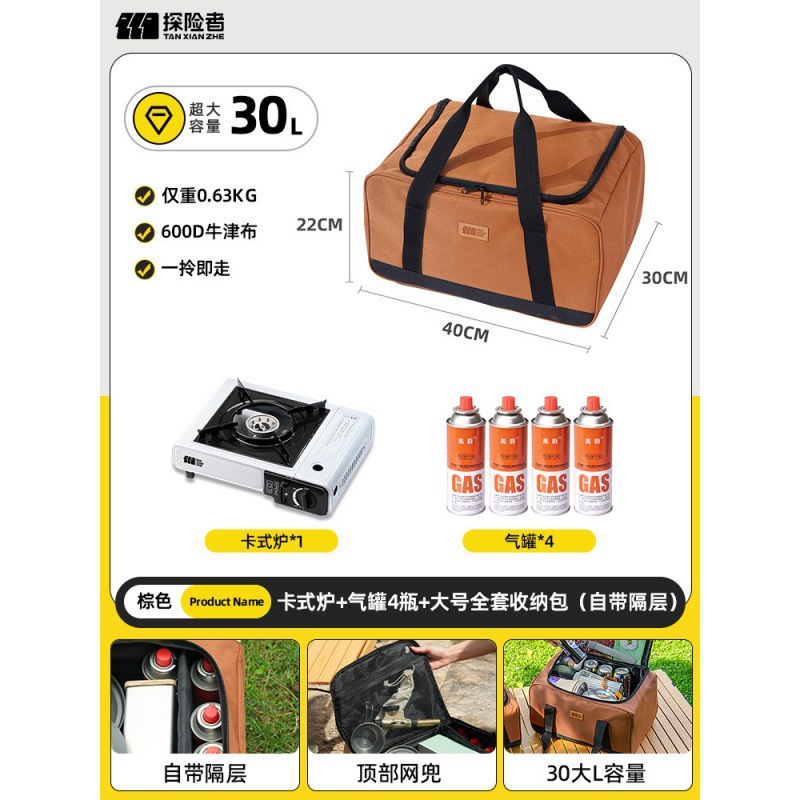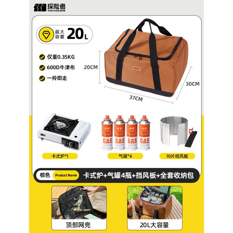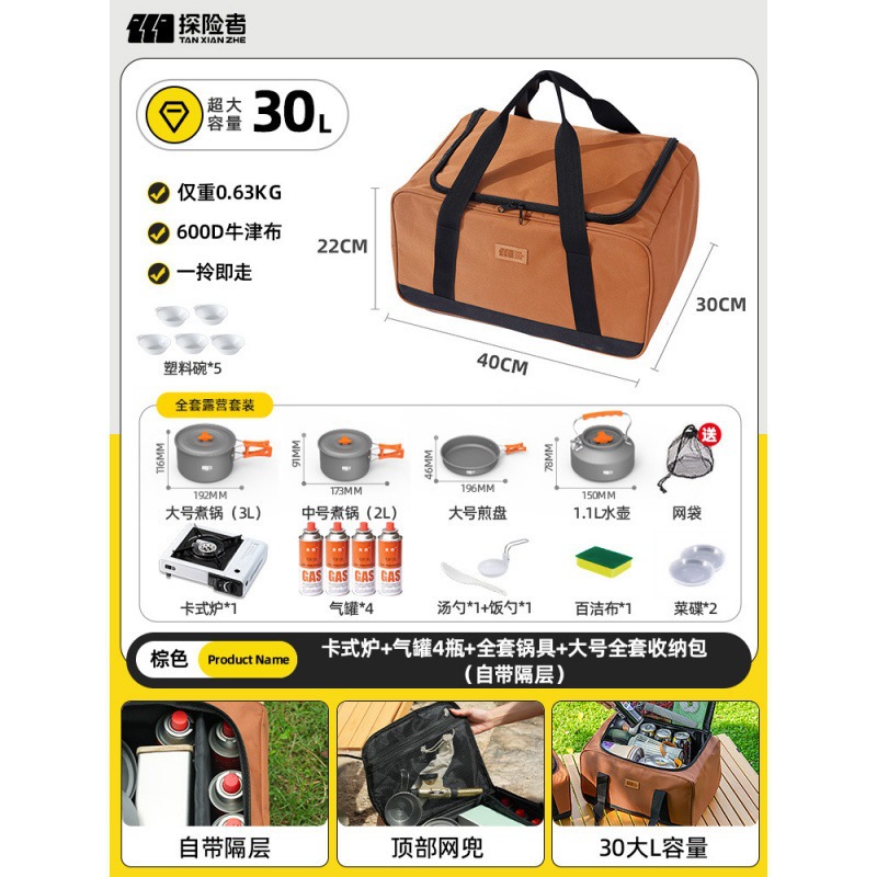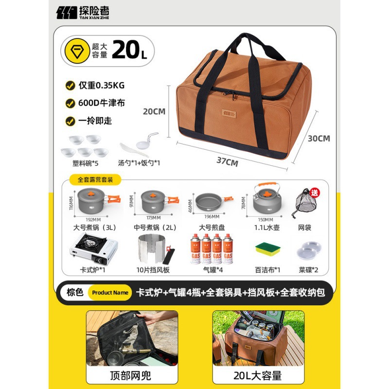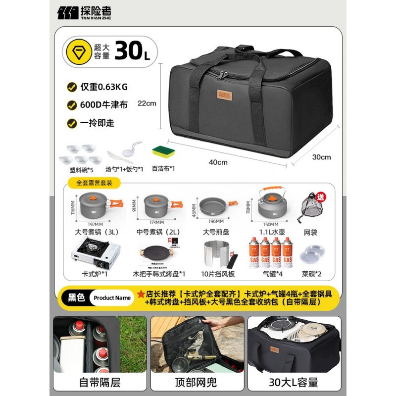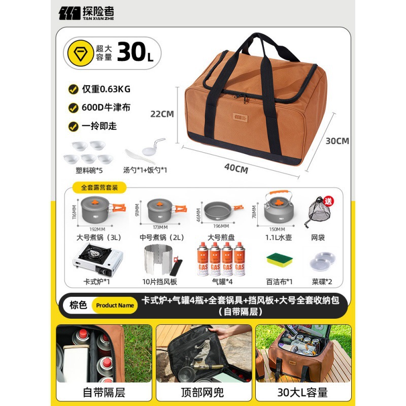 • 카세트 스토브 + 가스 탱크 4개 + 냄비 세트 + 대형 수납 가방 세트(수납 공간 포함)