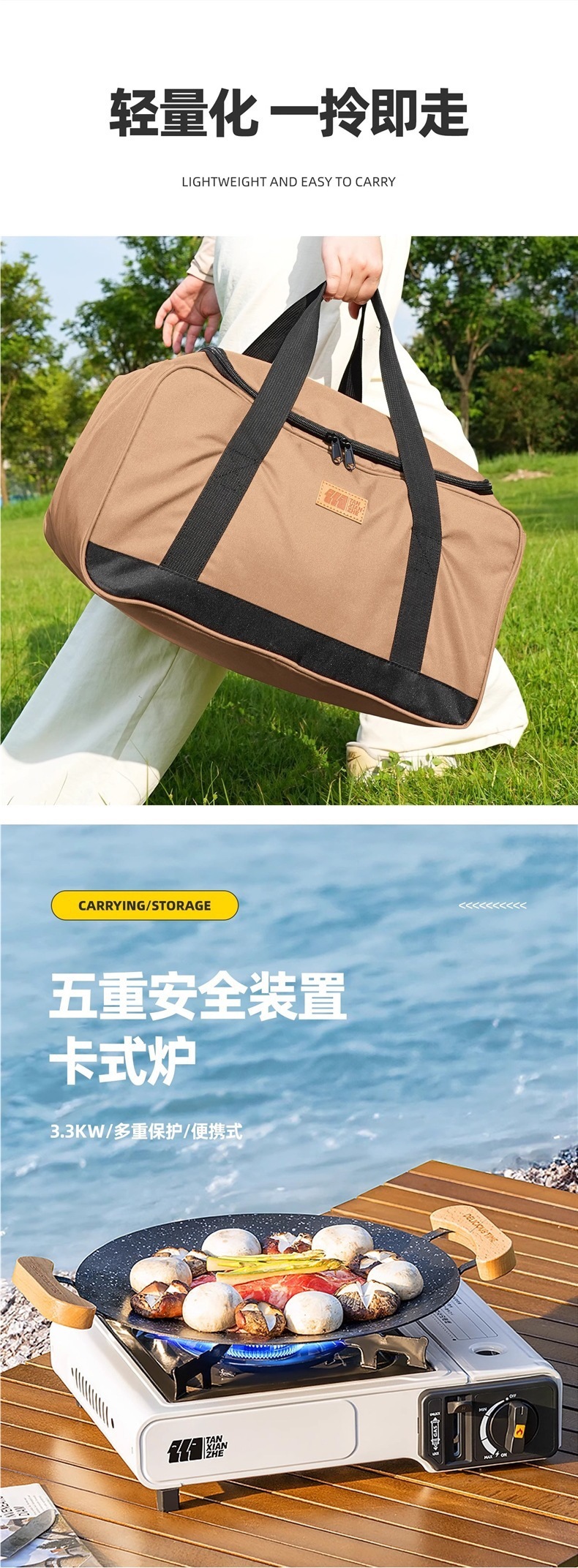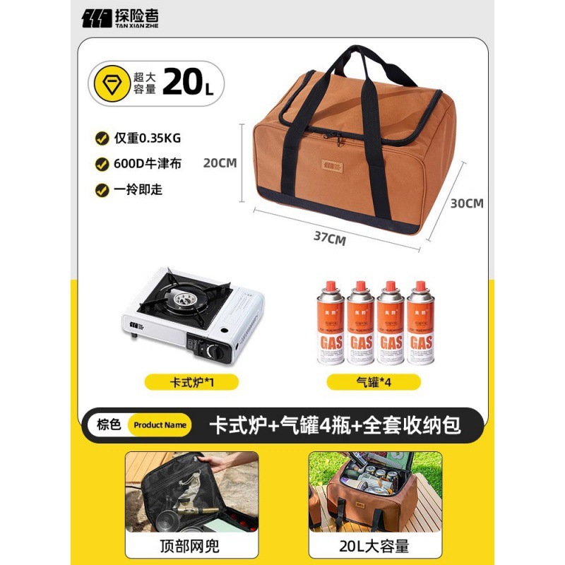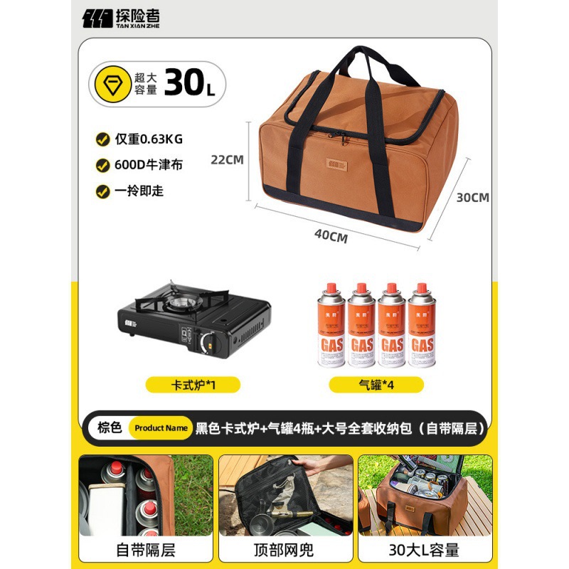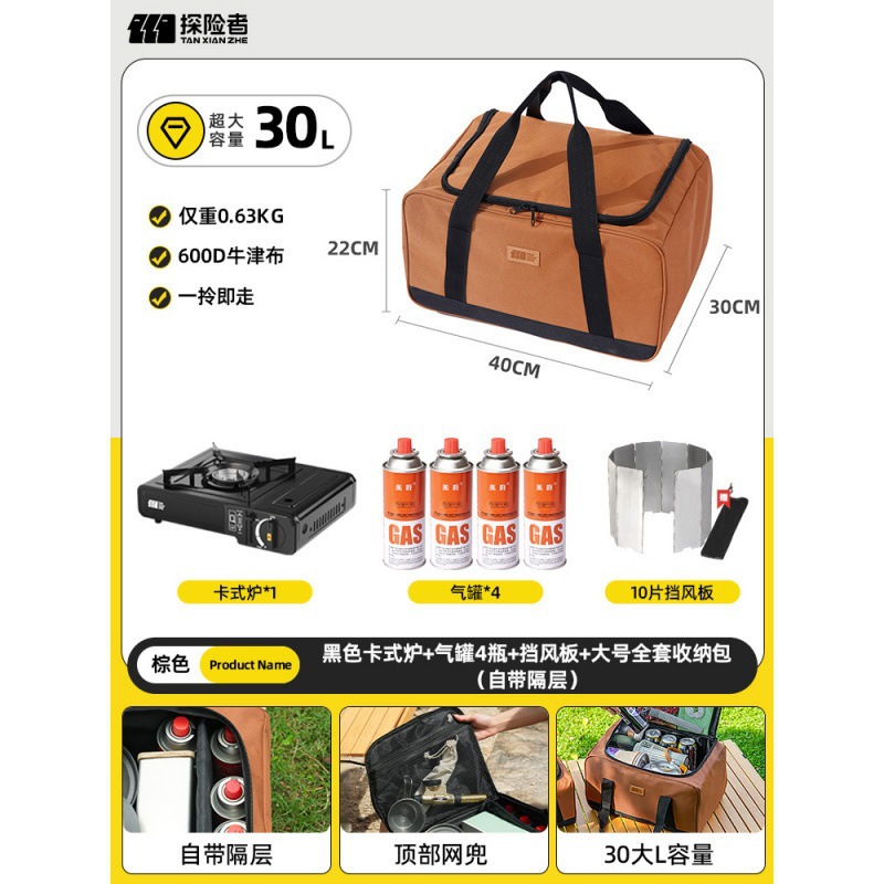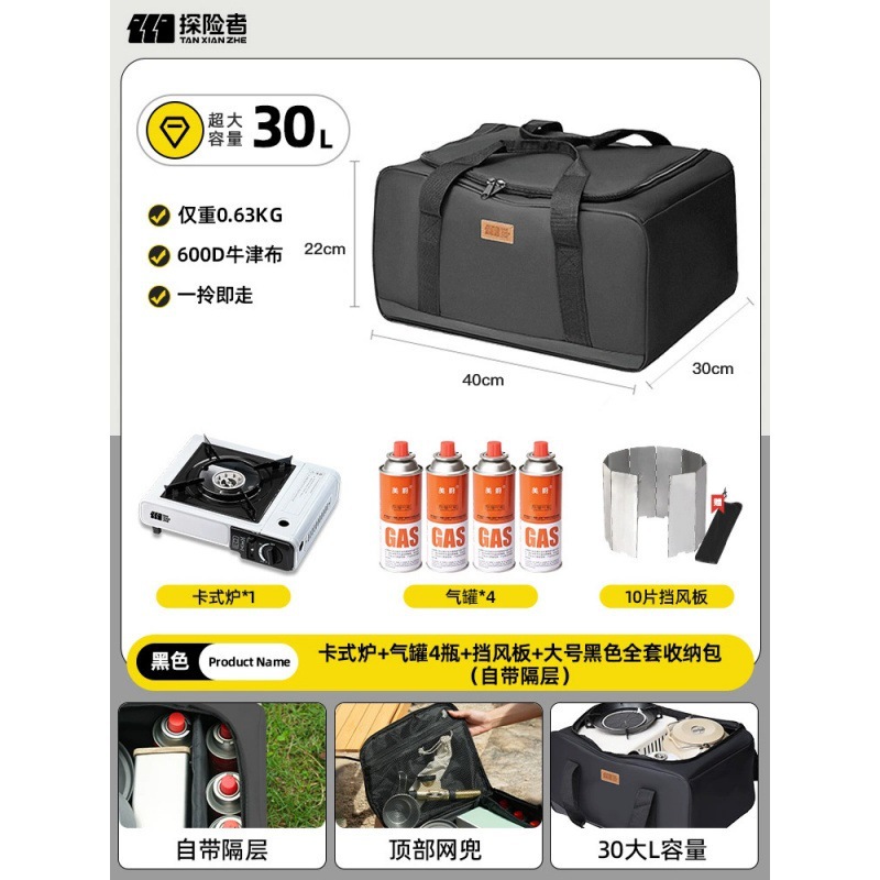 • 카세트 스토브 + 가스 탱크 4개 + 냄비 세트 + 대형 수납 가방 세트(수납 공간 포함)