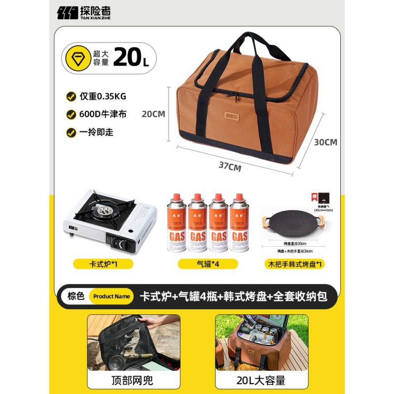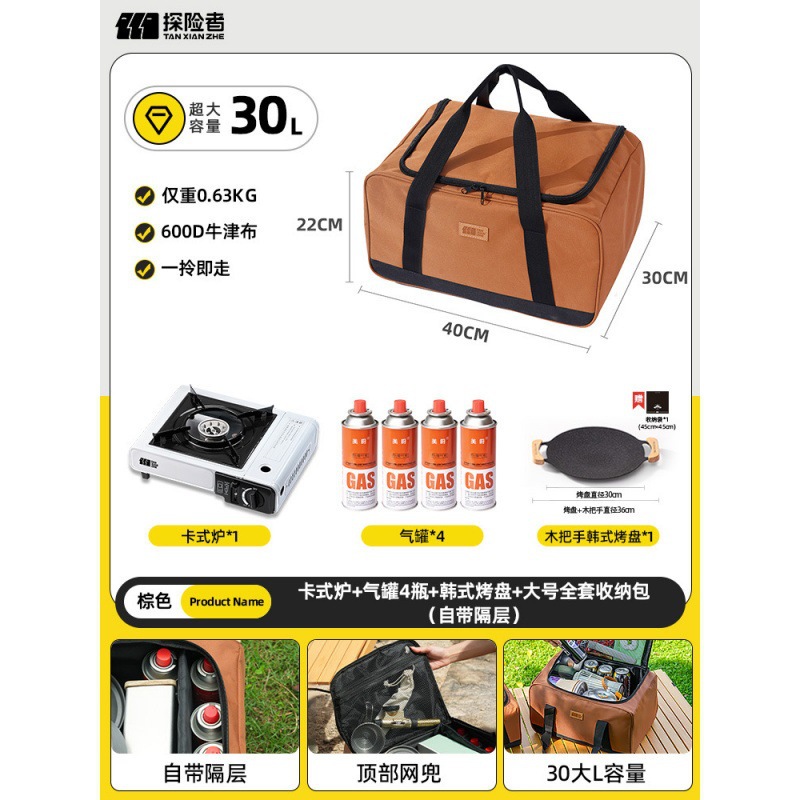 • 카세트 스토브 + 가스통 4개 + 한국식 베이킹 팬 + 대형 수납 가방 전체 세트(수납 공간 포함)