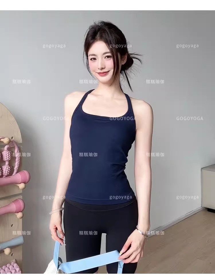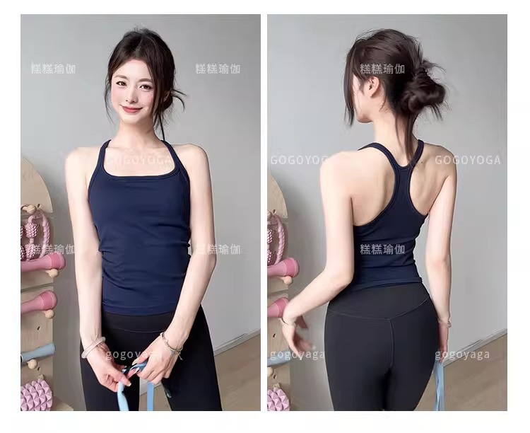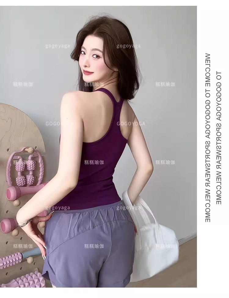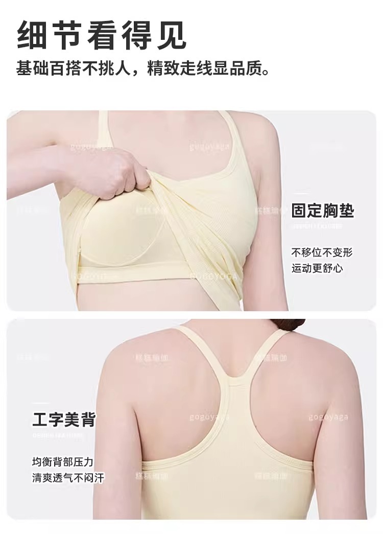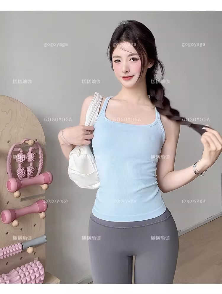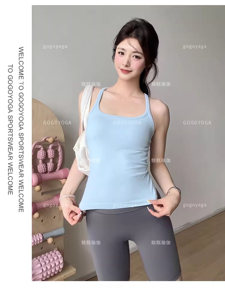 여성용 가슴 패드가있는 여름 스포츠 조끼, 충격 방지 속건성 피트니스 브라, 신축성있는 I 자형 속옷, 요가 의류 탑, 새로운스토어 가기