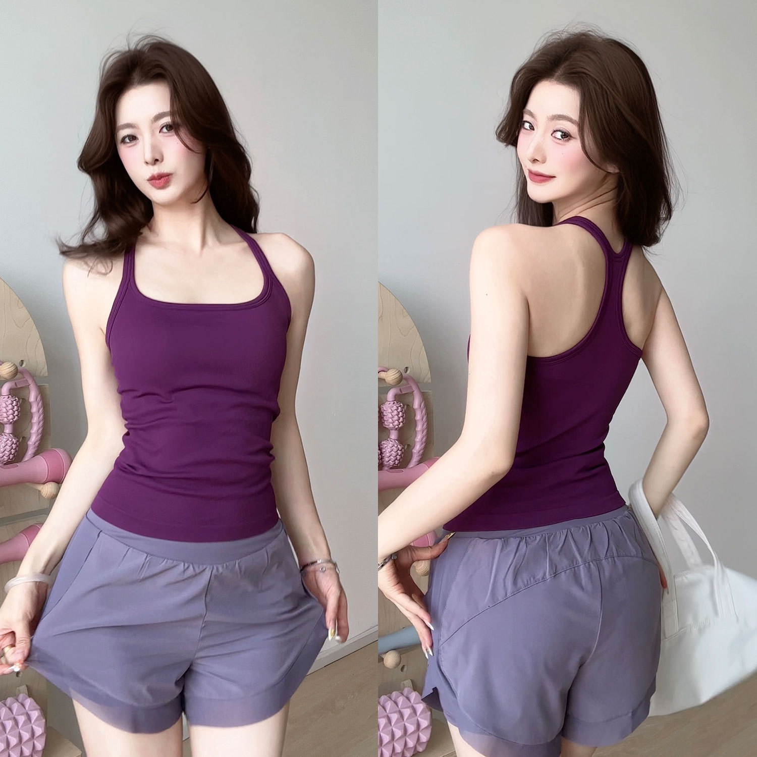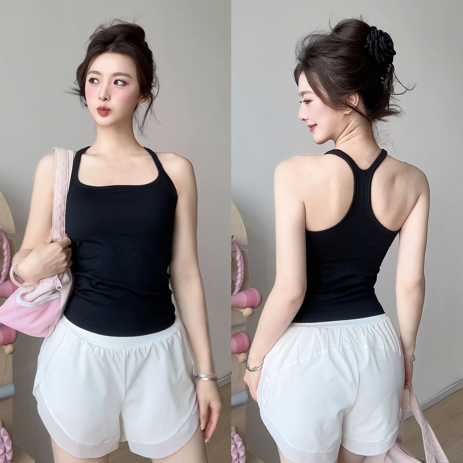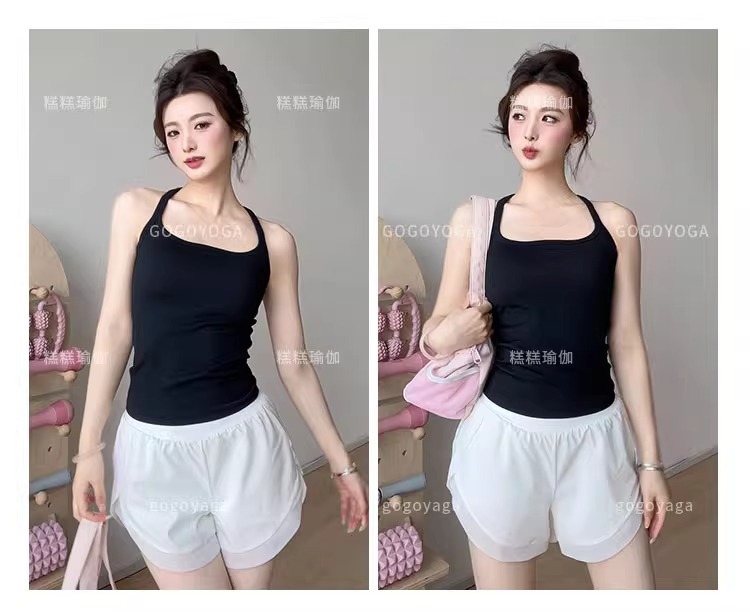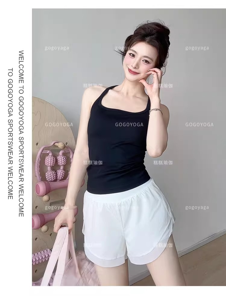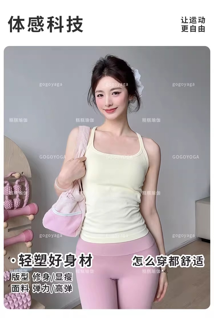 여성용 가슴 패드가있는 여름 스포츠 조끼, 충격 방지 속건성 피트니스 브라, 신축성있는 I 자형 속옷, 요가 의류 탑, 새로운스토어 가기