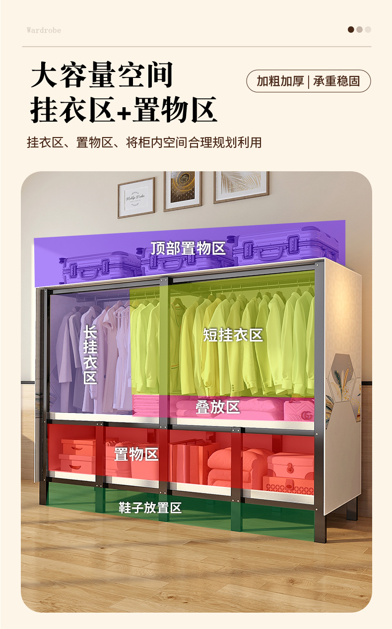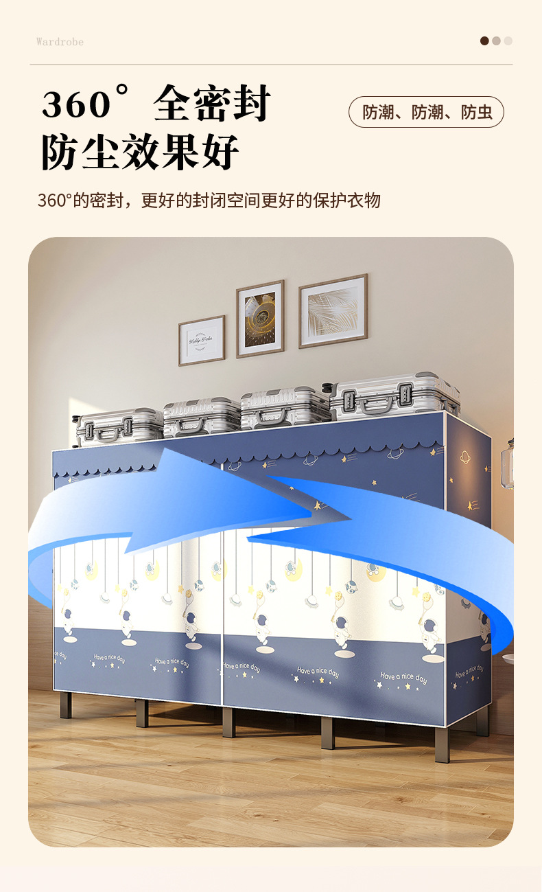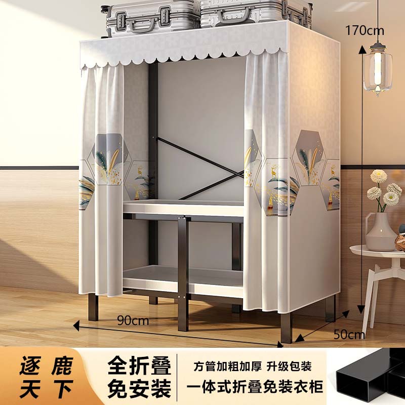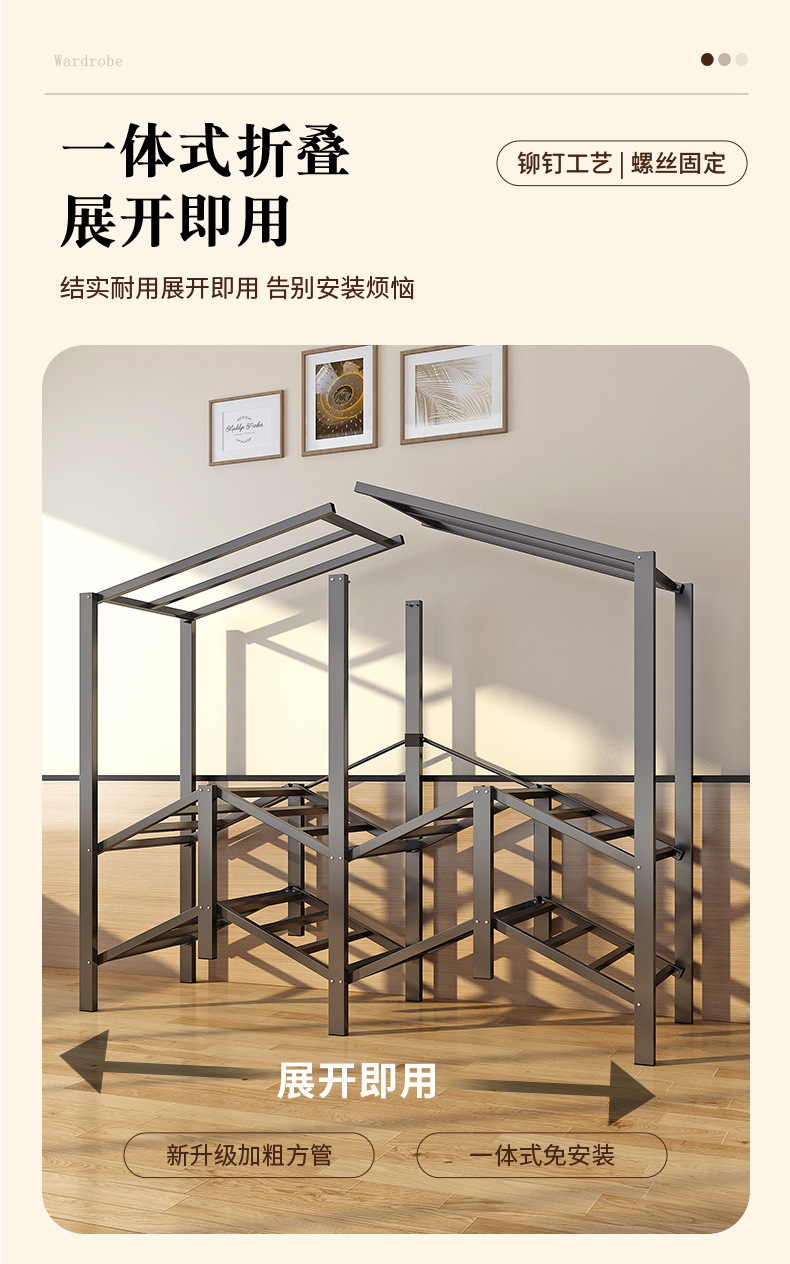 설치가 필요 없는 진정한 간편형 옷장, 두꺼운 강철 프레임과 천 소재로 제작된 가정용/침실용/임대주택용 옷장