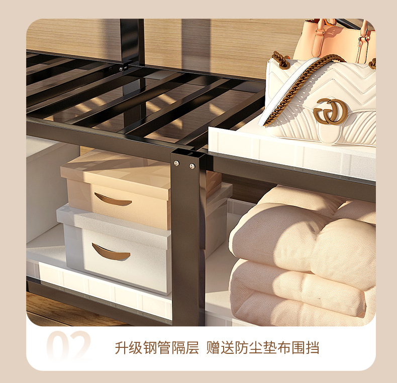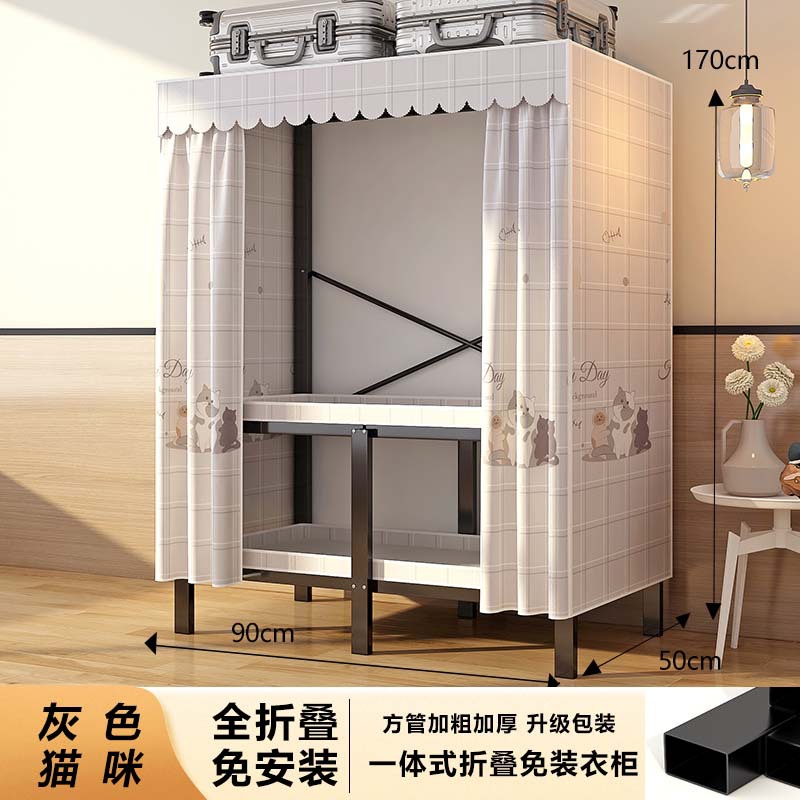 설치가 필요 없는 진정한 간편형 옷장, 두꺼운 강철 프레임과 천 소재로 제작된 가정용/침실용/임대주택용 옷장스토어 가기