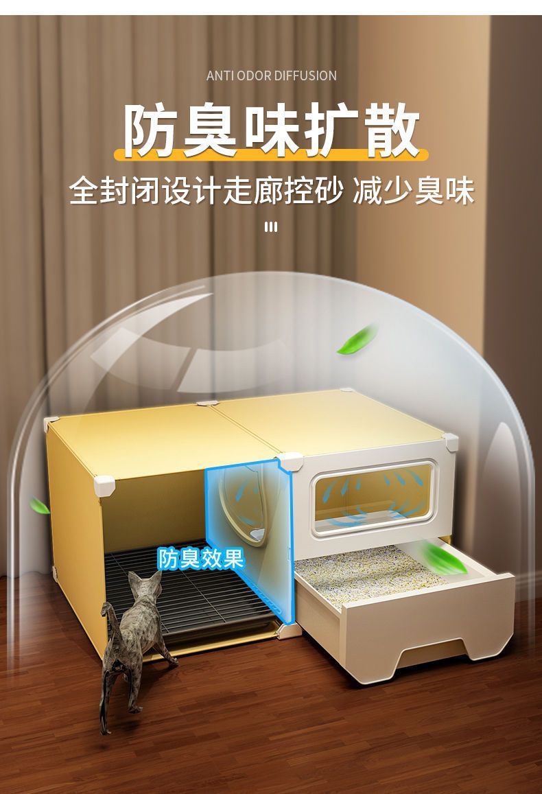 완전 밀폐형 고양이 화장실, 냄새 차단, 초대형 복도형 물 튀김 방지 서랍형 고양이 화장실, 냄새 차단 변기스토어 가기