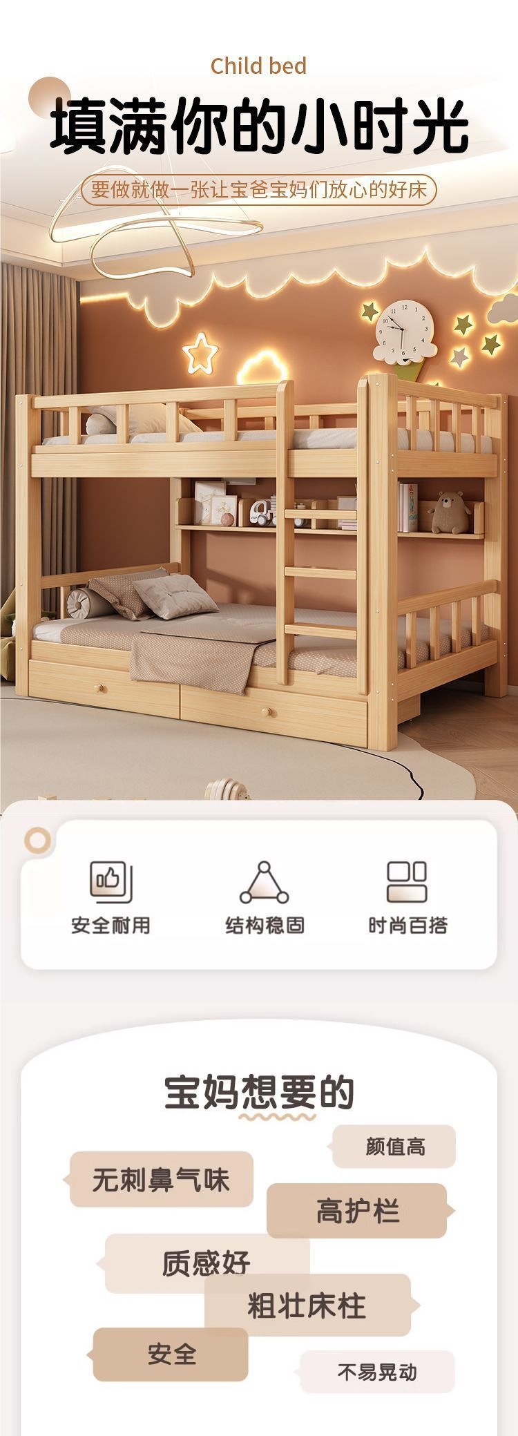 • 두껍고 대담한 직선 사다리 스타일의 이층 침대
