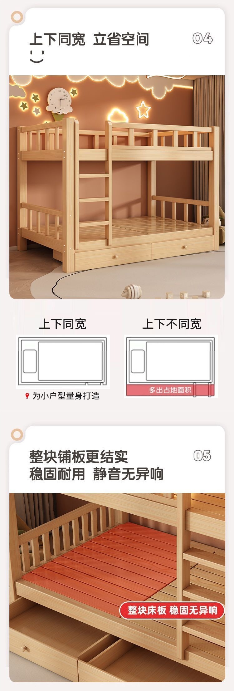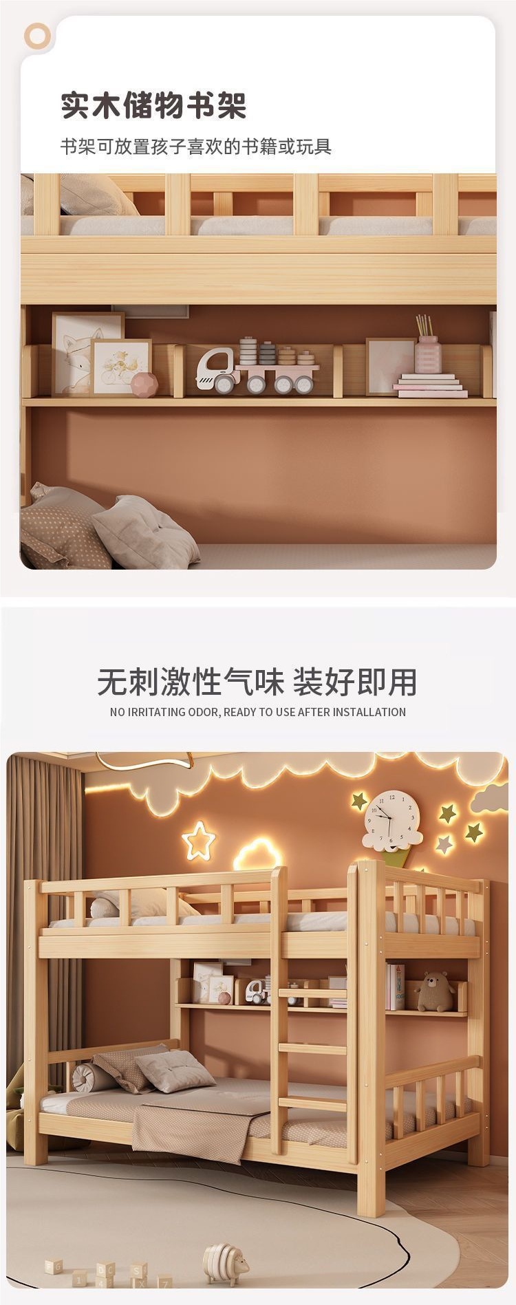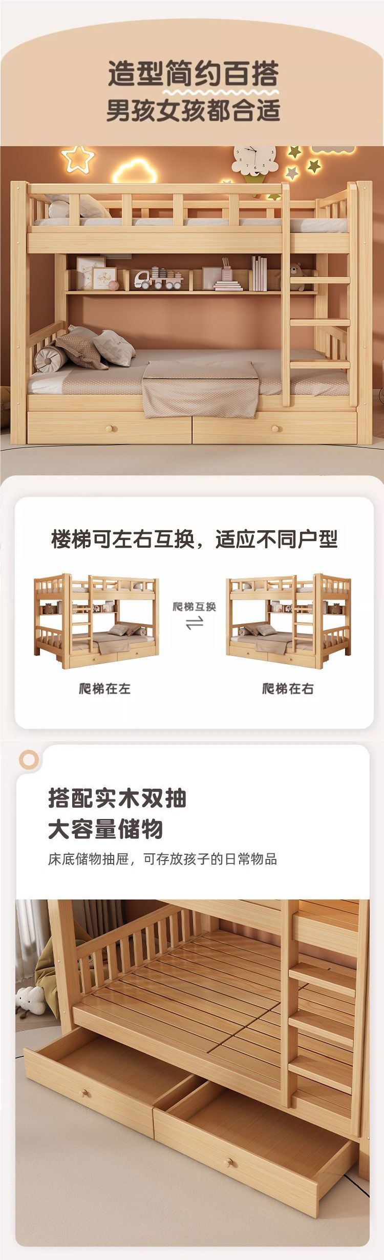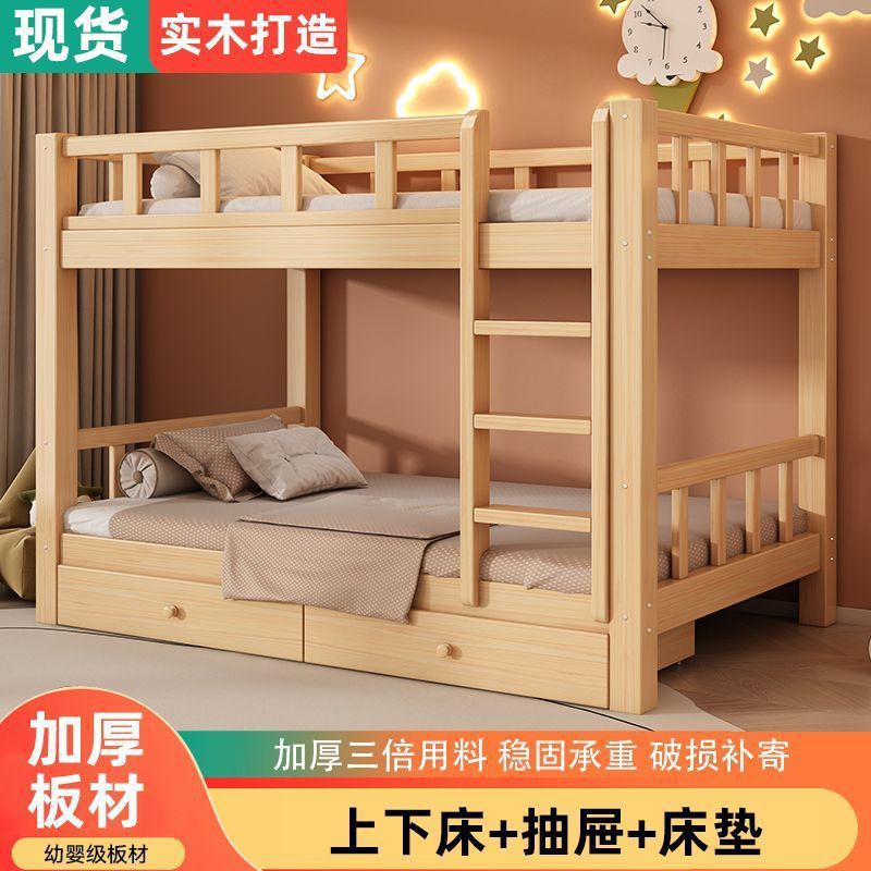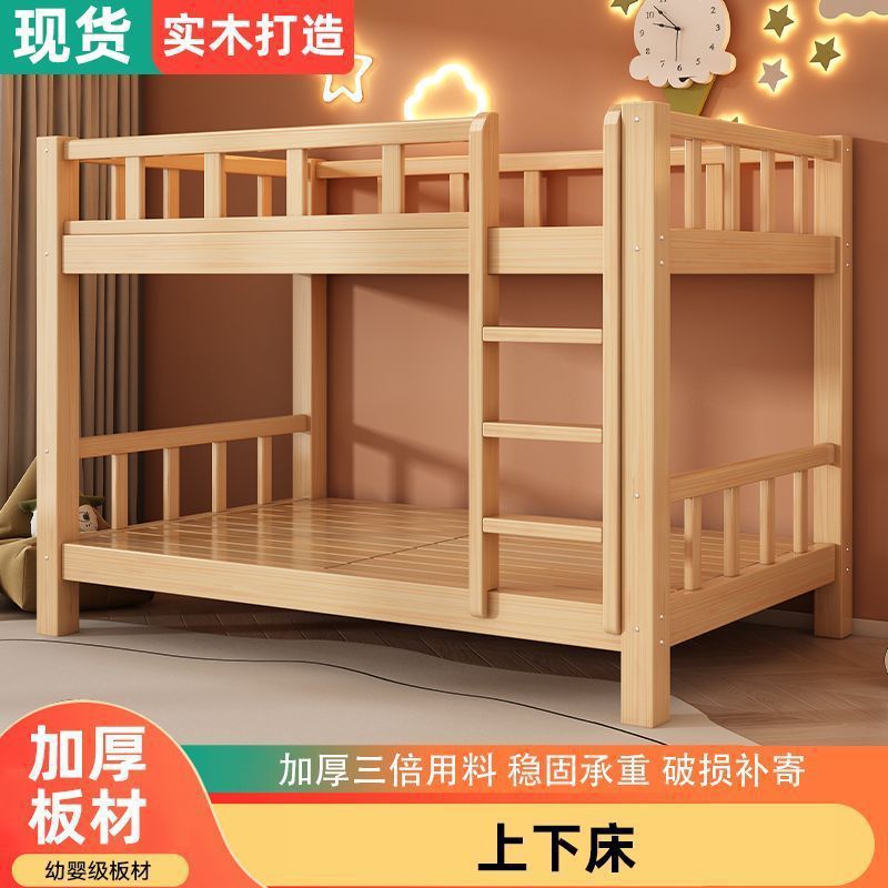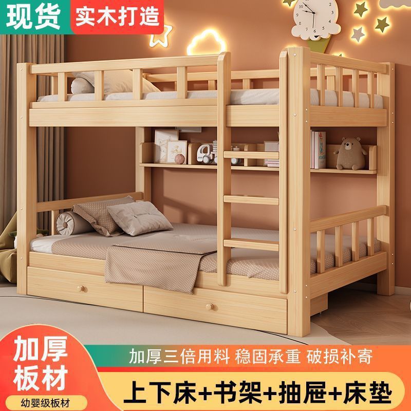 성인과 어린이를 위한 현대적이고 단순한 원목 더블 침대, 다기능 공간 절약형 더블 침대, 하이 및 로우 침대스토어 가기