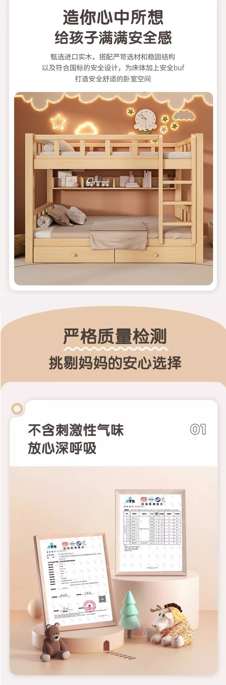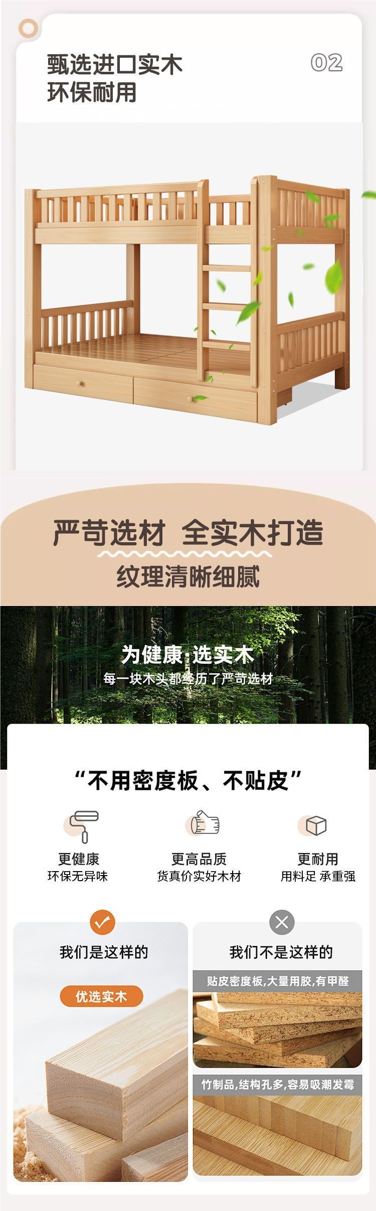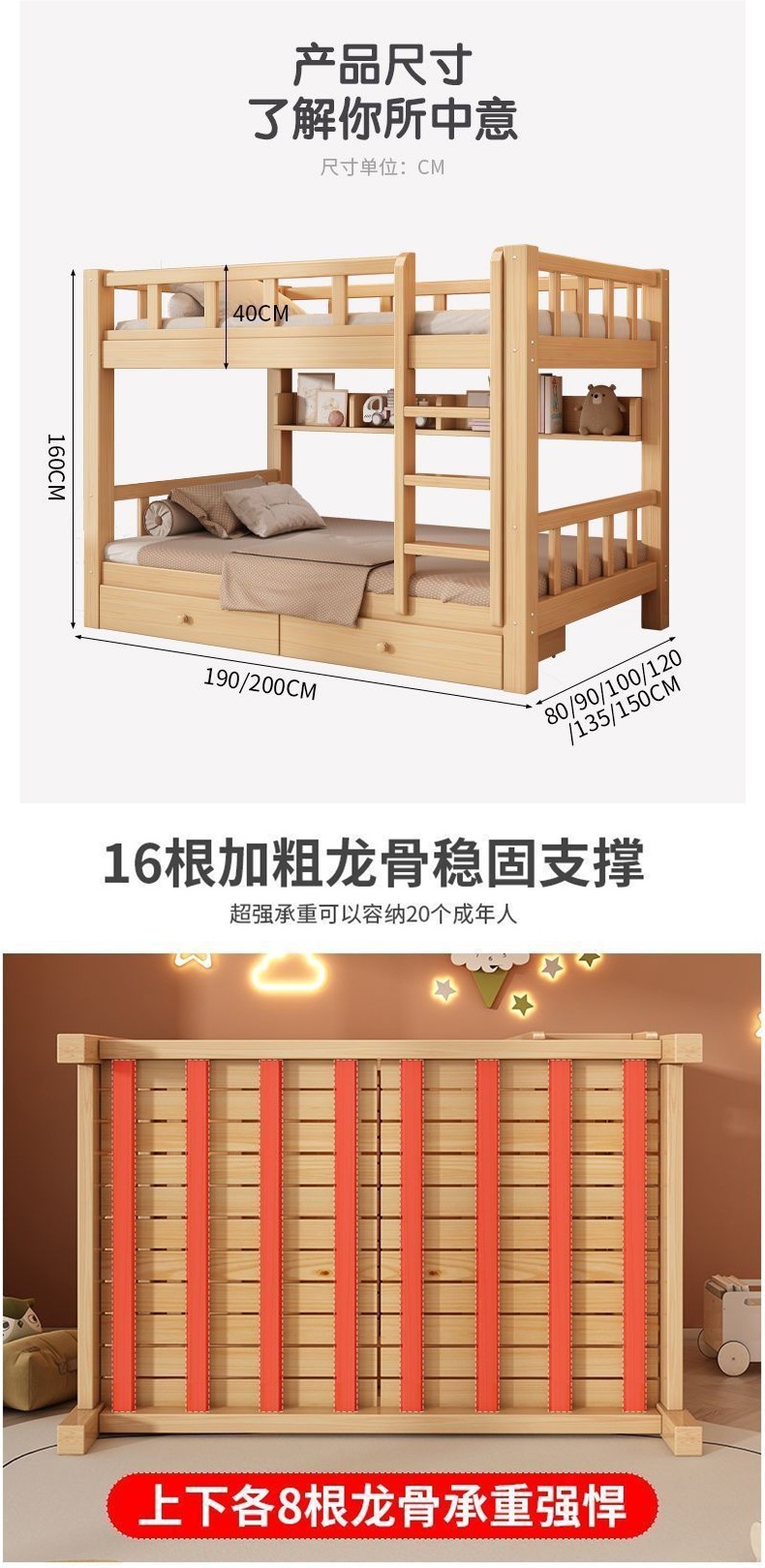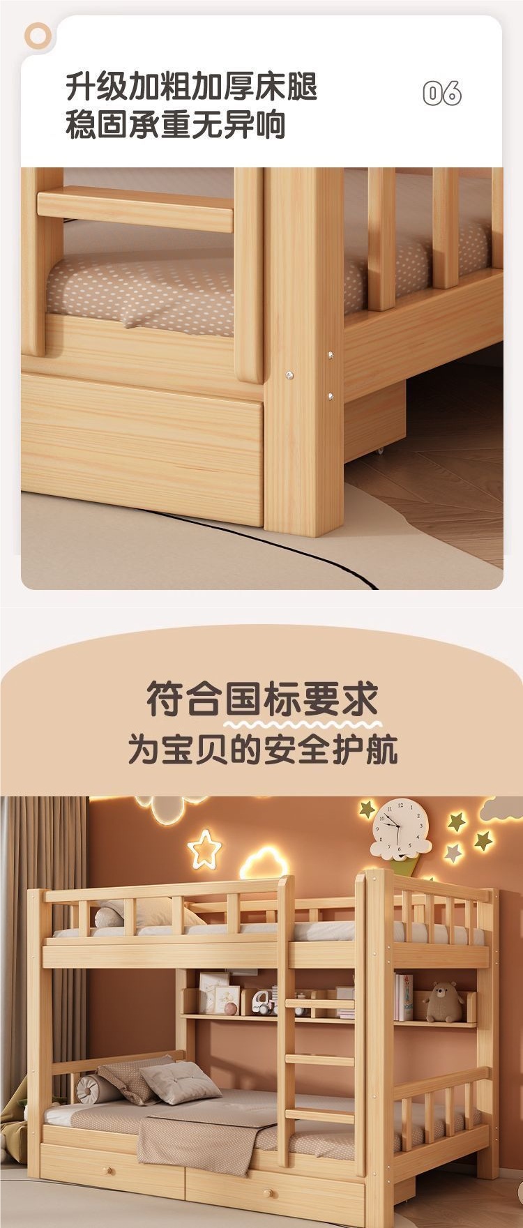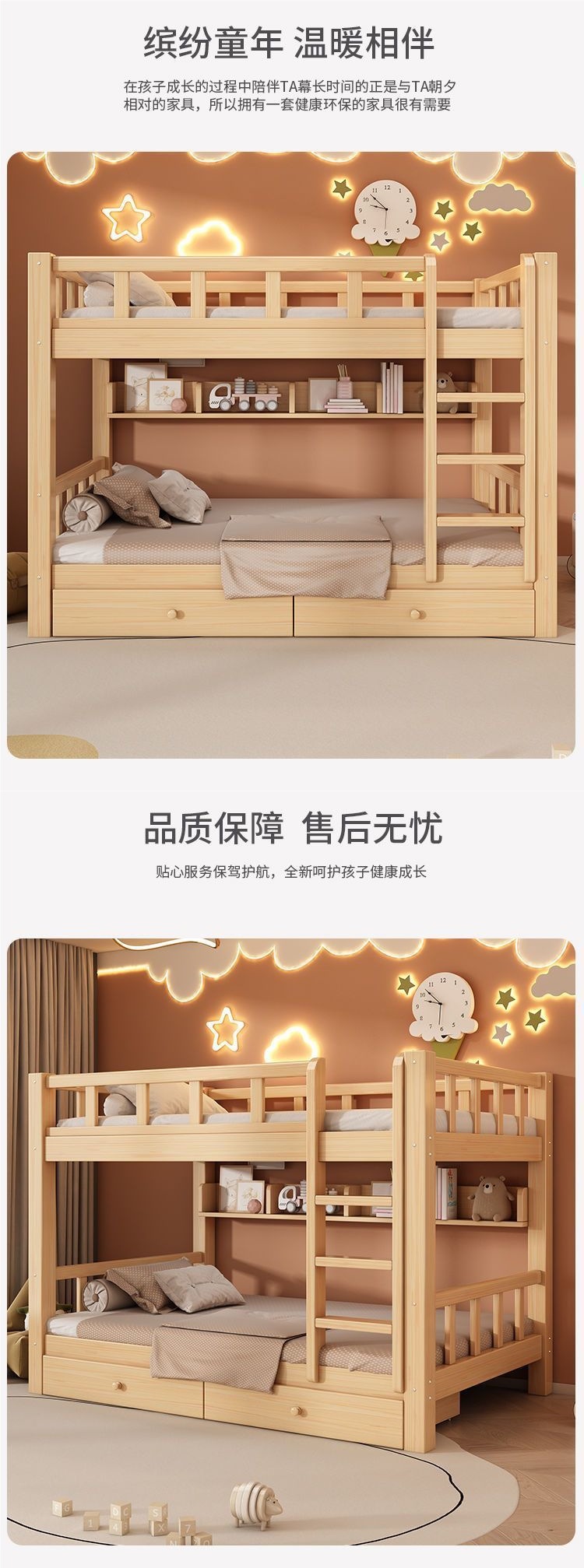 성인과 어린이를 위한 현대적이고 단순한 원목 더블 침대, 다기능 공간 절약형 더블 침대, 하이 및 로우 침대스토어 가기