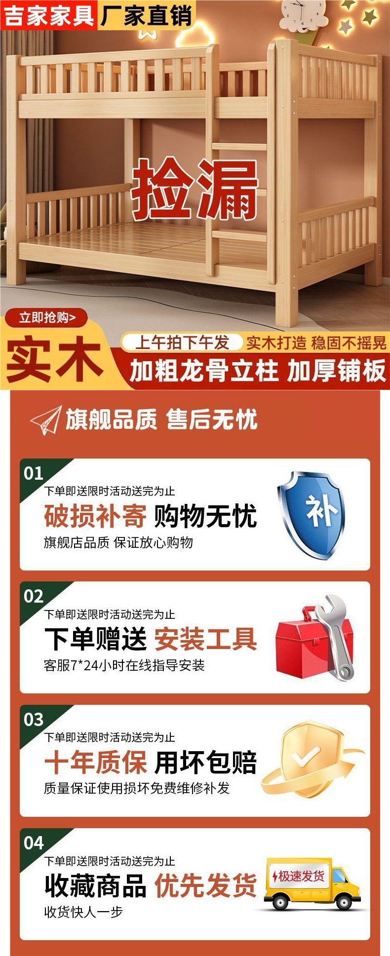 • 두껍고 대담한 직선사다리형 2층침대 [설치포함]