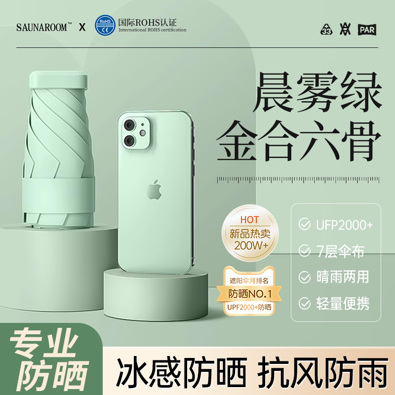 • 모닝 미스트 그린 [UPF2000+자외선 차단+티타늄 합금 우산꽂이+IPX9 방수]
