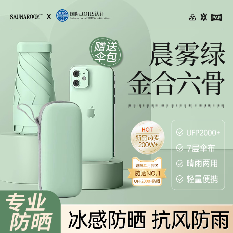 • 모닝 미스트 그린 프리 우산 가방 [UPF2000+자외선 차단+티타늄 합금 우산 꽂이+IPX9 방수]