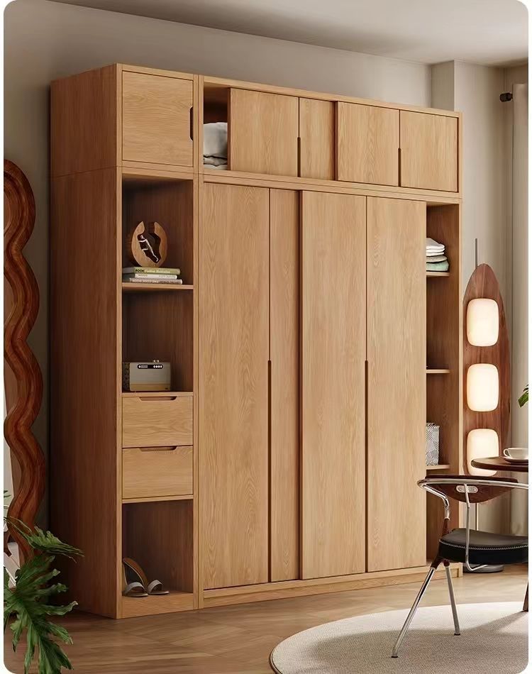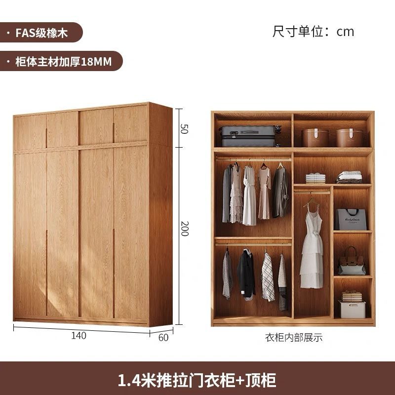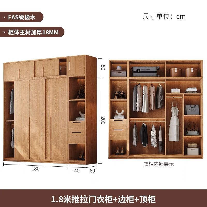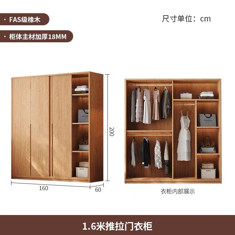 북유럽 스타일 단단한 나무 옷장 통나무 홈 침실 오크 도어 보관 대형 옷장 작은 아파트 슬라이딩 도어 옷장스토어 가기