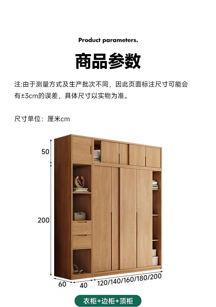 • 1.8m 미닫이문 옷장 + 사이드 캐비닛 + 상단 캐비닛
