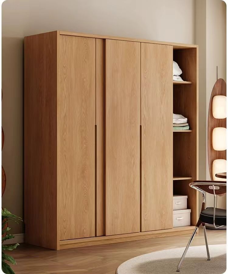 북유럽 스타일 단단한 나무 옷장 통나무 홈 침실 오크 도어 보관 대형 옷장 작은 아파트 슬라이딩 도어 옷장