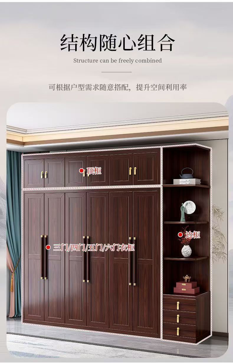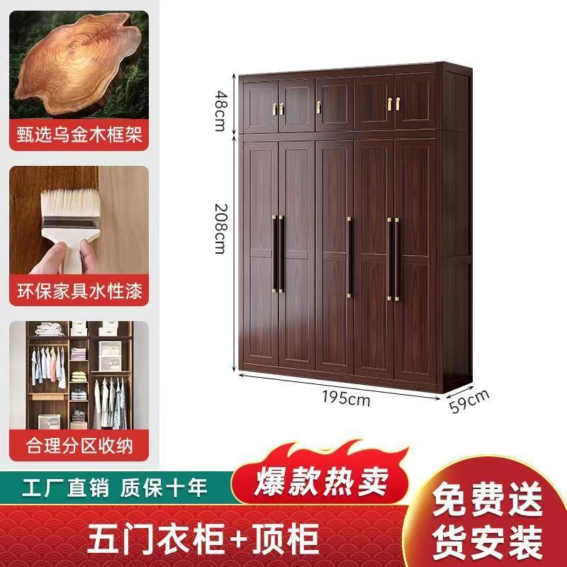 새로운 중국 스타일의 검은색 목재 전체 단단한 나무 다층 서랍이 있는 마스터 침실 양문형 상단 캐비닛 다기능 수납 옷장 전체 세트스토어 가기