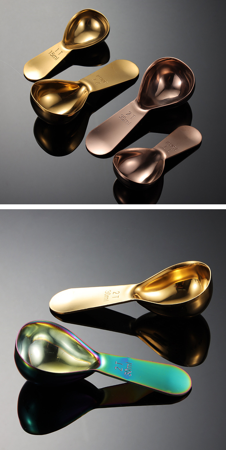 무료 배송 Tianlin 304 스테인레스 스틸 측정 컵 측정 숟가락 티타늄 도금 PVD 다채로운 주방 베이킹 도구 크로스 보더 밀가루 스푼