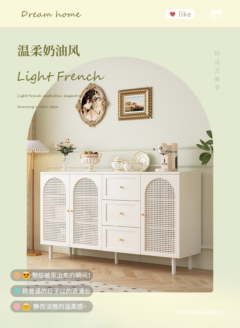 찬장, 현대적이고 심플한 프렌치 스타일의 수납 선반, 소형 가족용 서랍장, 등나무로 짠 원목 주방 캐비닛, 가벼운 고급 수납 캐비닛스토어 가기