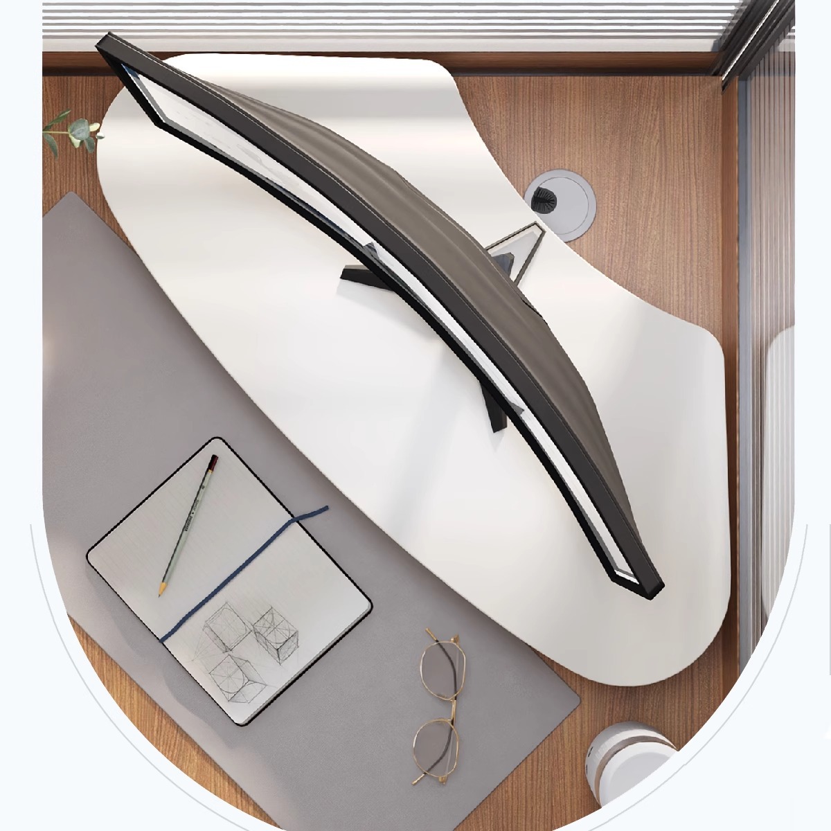 • 부채꼴 60*30/아크릴 L다리-우드컬러
