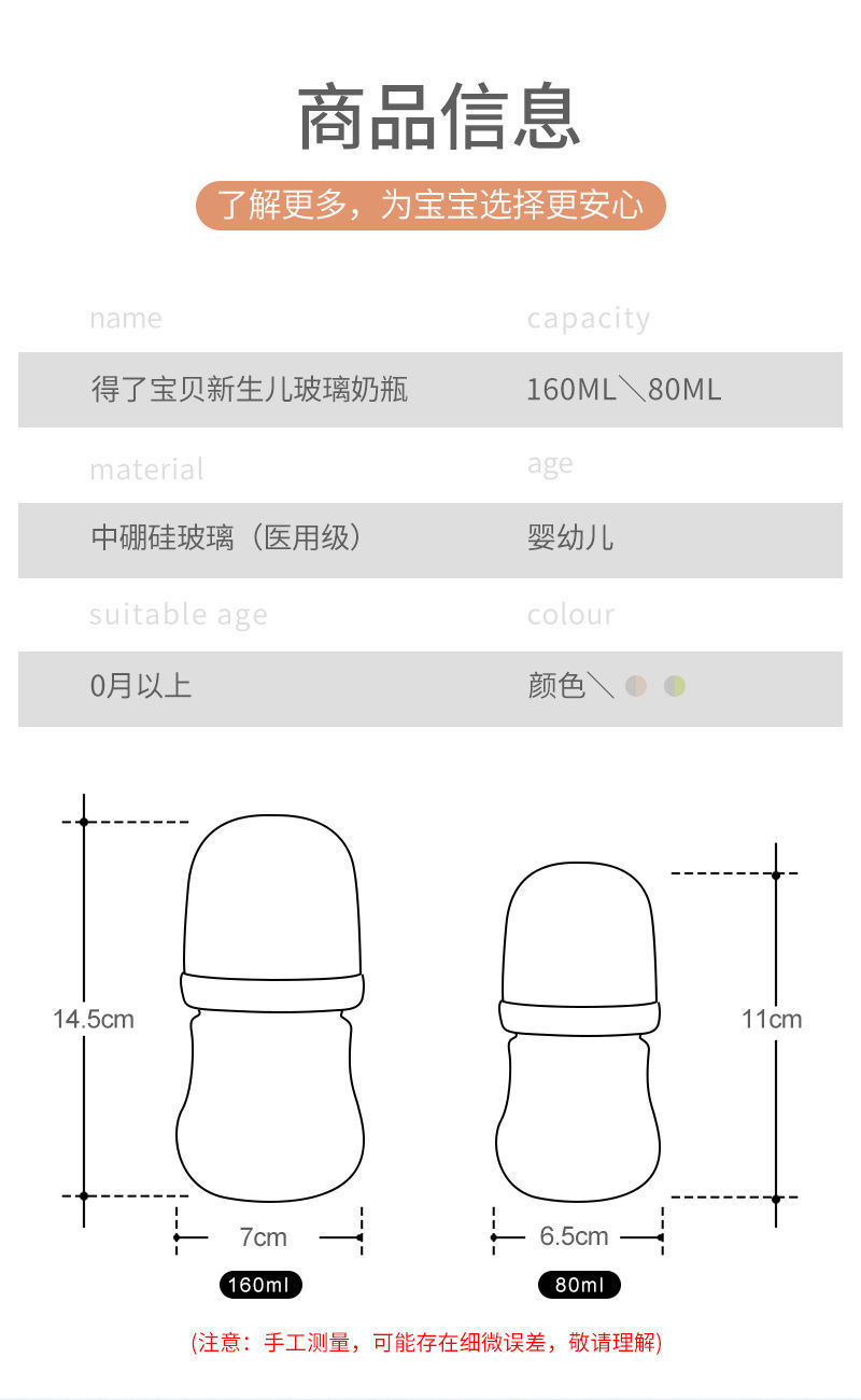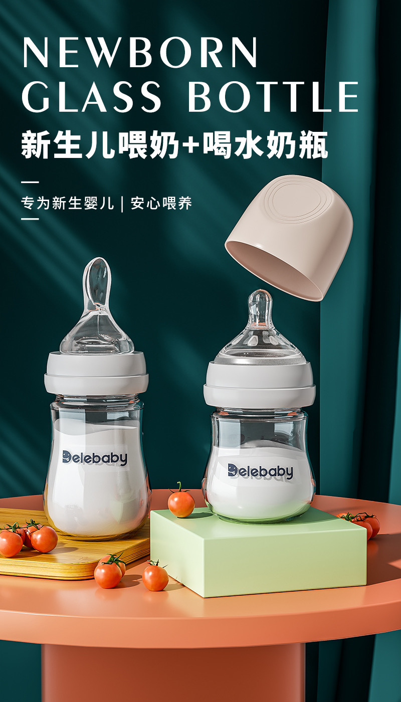 아기 젖병 유리 넓은 직경 마시는 물 스푼 미니 소형 신생아 0-6 개월 주스 병 국경 간스토어 가기