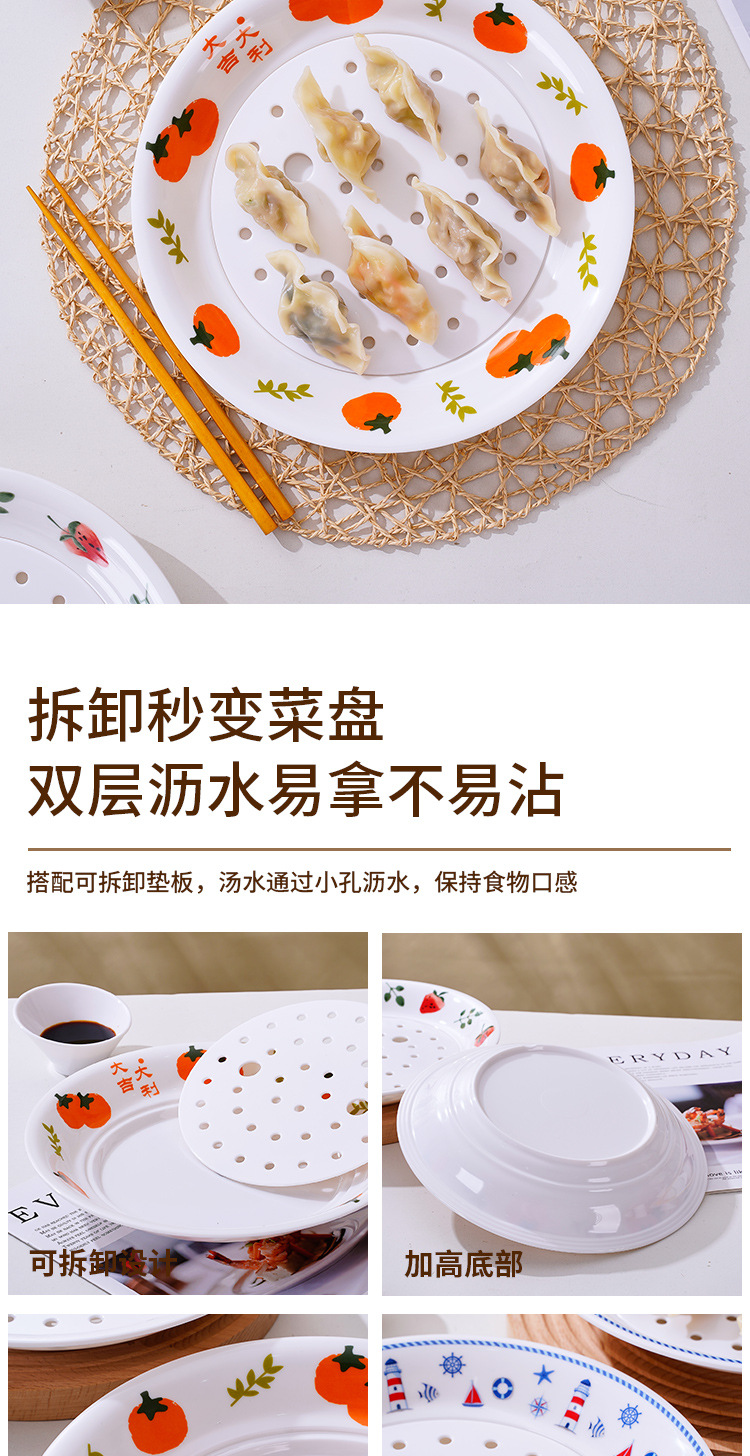 새로운 만두 접시 배수 이중층 접시 가정용 만두 접시 아침 식사 접시 새우 접시 A5 멜라민 원형 접시