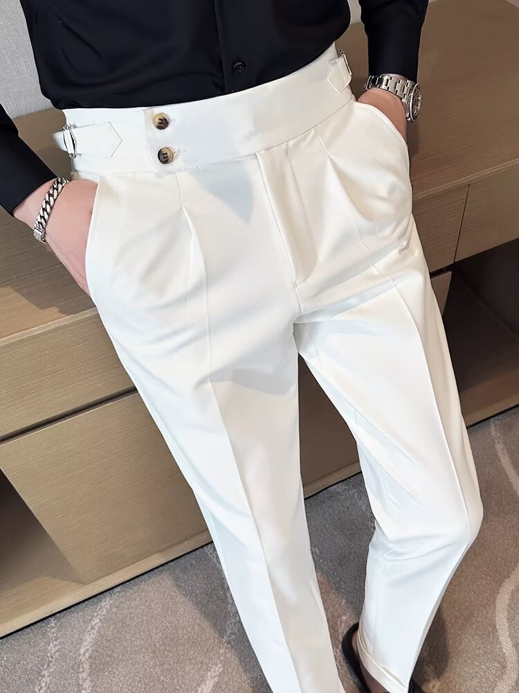 2025 봄 신작 영국 패션 슬림핏 바지 남성 한국 스타일 트렌디 다용도 캐주얼 비즈니스 정장 바지