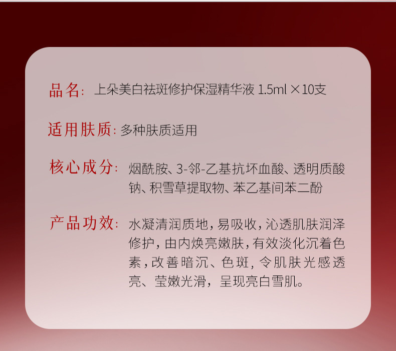 Shangduo 미백, 주근깨 복구 및 보습 에센스는 피부에 수분을 공급하고 보습 및 부드럽게 해줍니다. 제조업체 도매스토어 가기