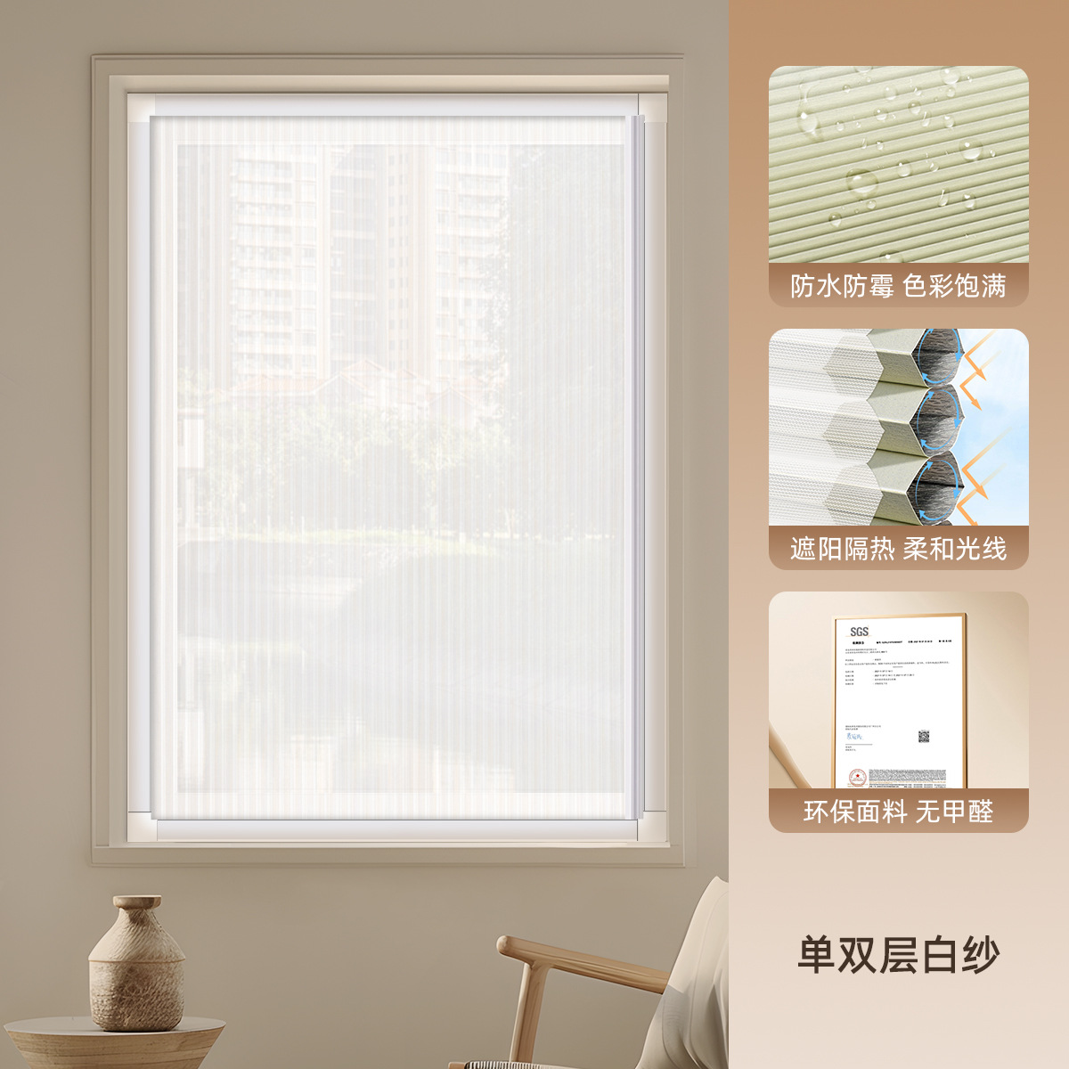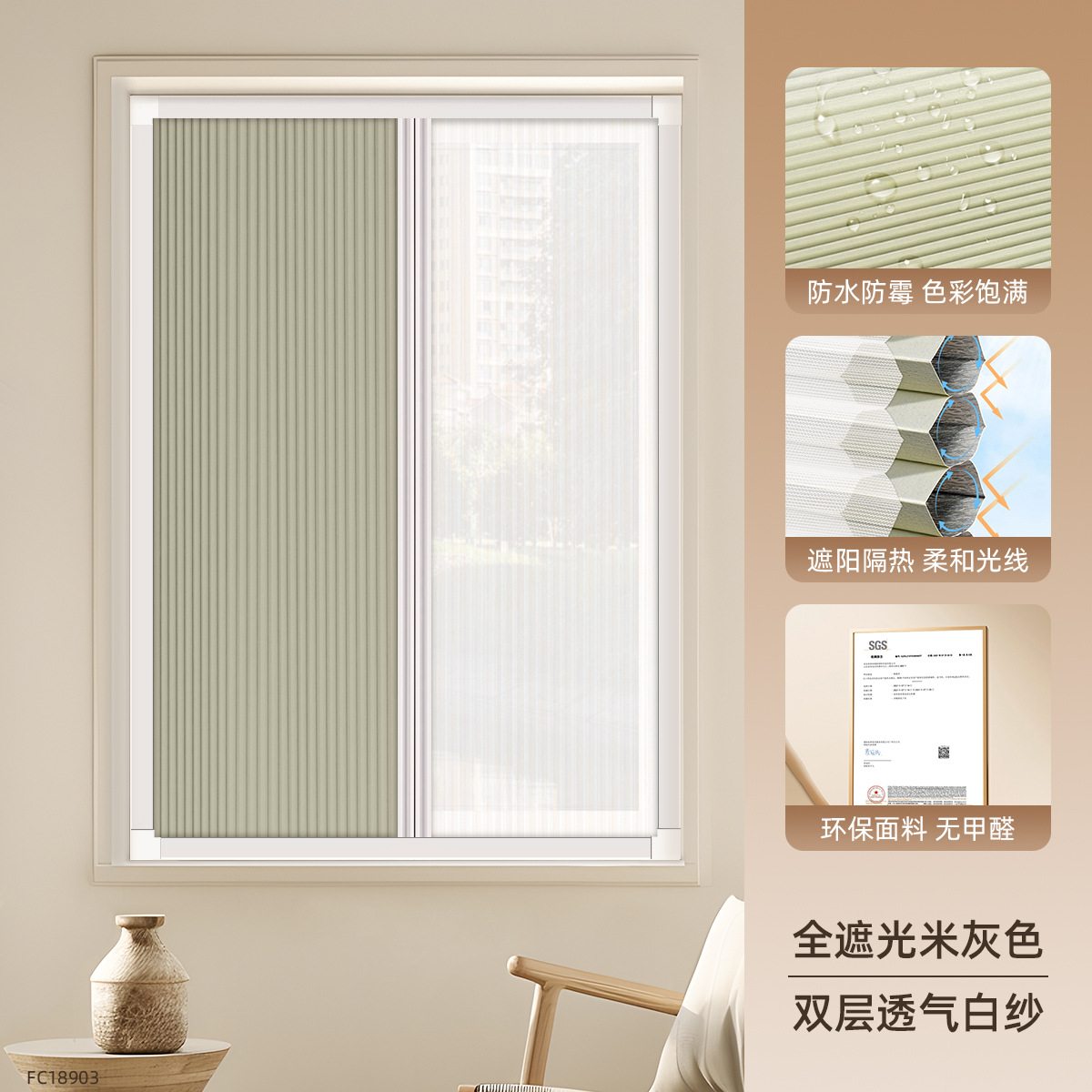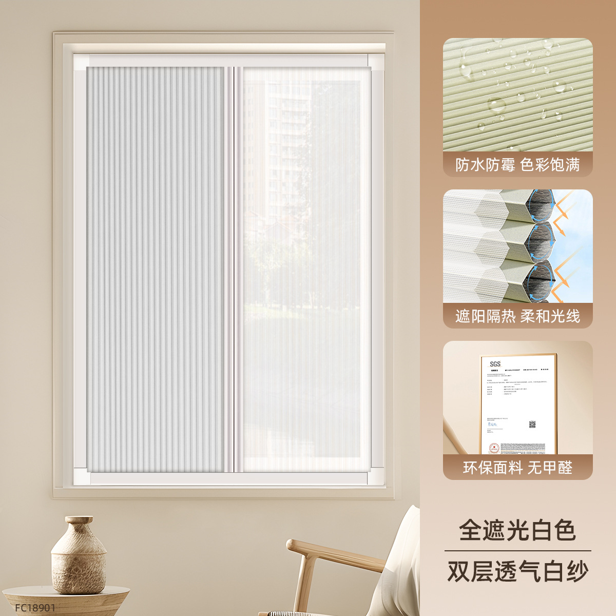 • [차양 및 단열] 완전 암막 베이지 FC18903 + 이중 통기성 흰색 거즈