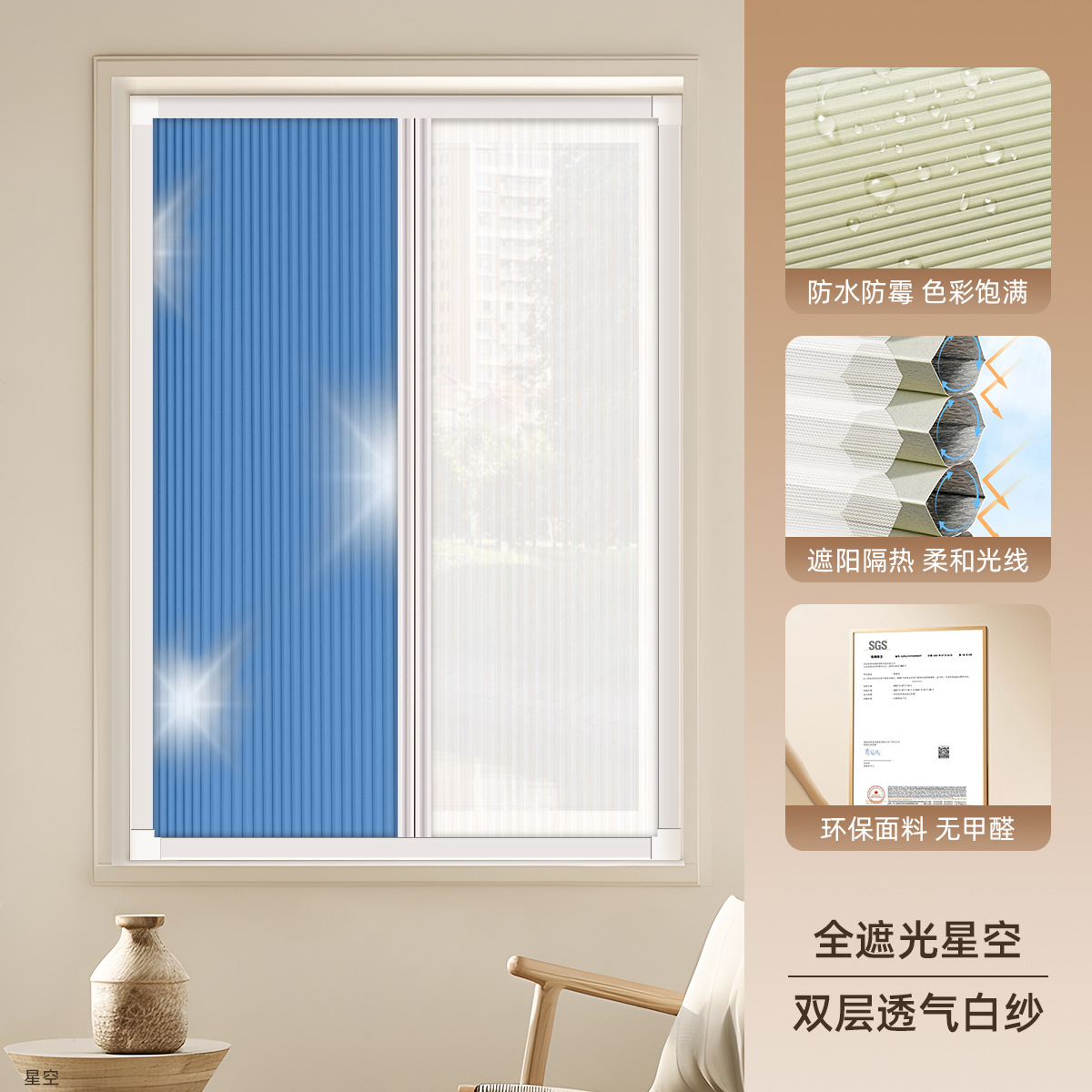 • [차양 및 단열] 완전 암막 별이 빛나는 하늘 + 이중 통기성 흰색 거즈