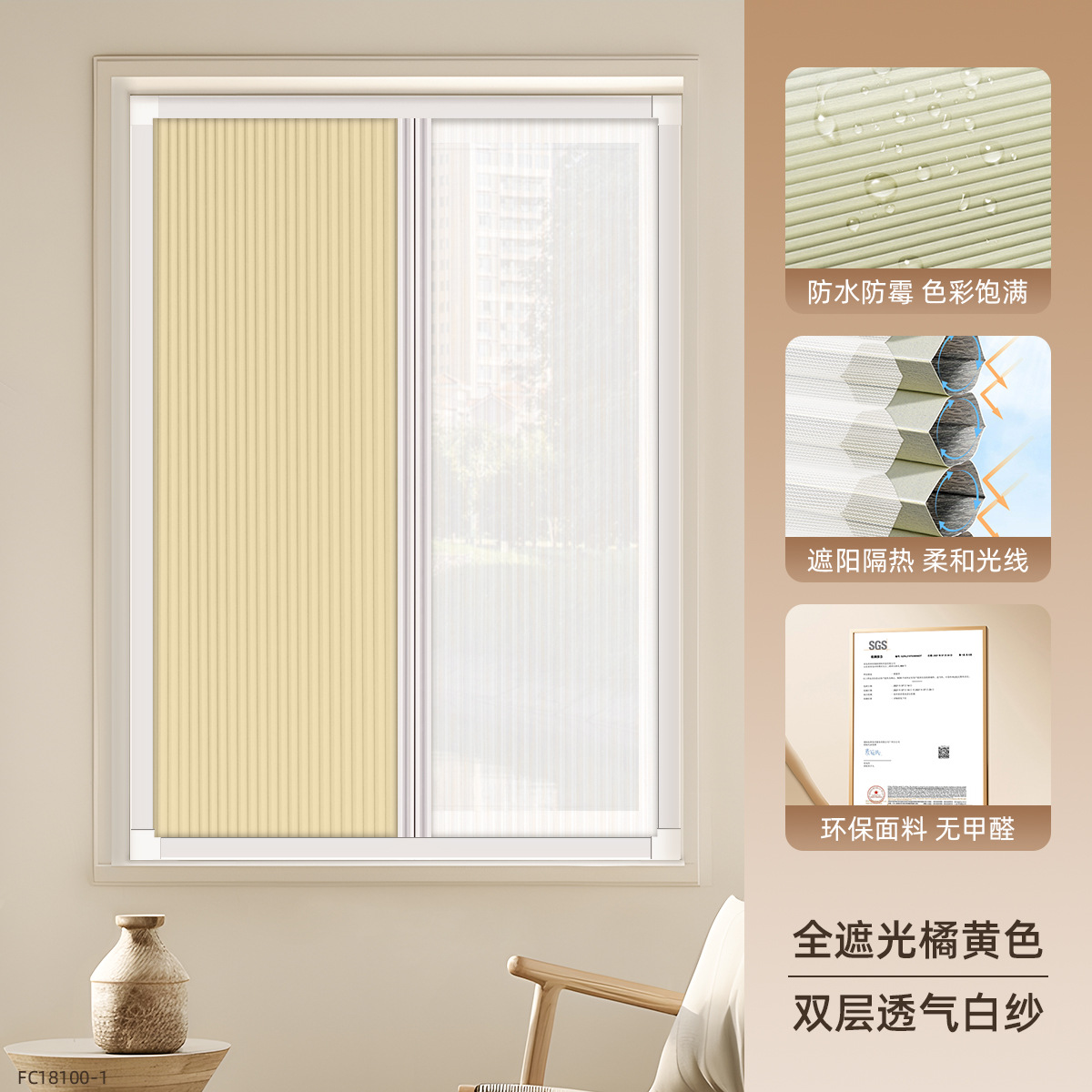 • [차양 및 단열] 완전 암막 오렌지 FC18100-1 + 이중 통기성 흰색 거즈