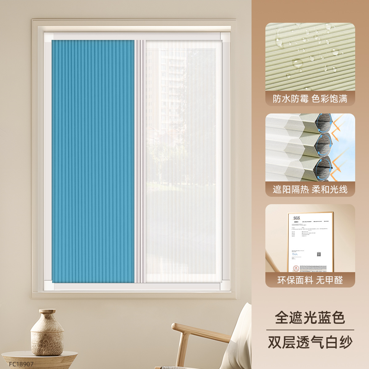 • [차양 및 단열] 완전 암막 블루 FC18907 + 이중 통기성 흰색 거즈