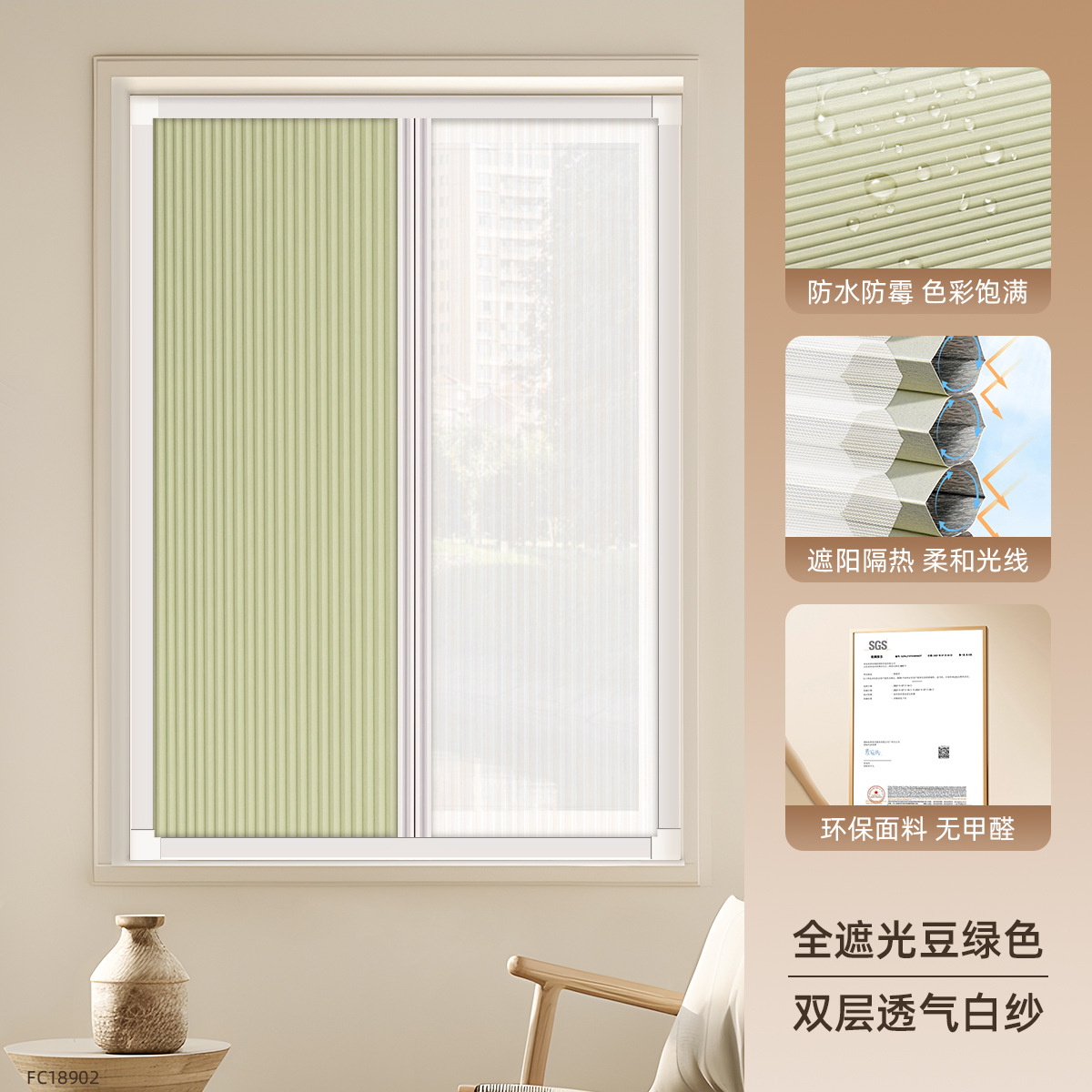 • [차양 및 단열] 완전 암막 빈 그린 FC18902 + 이중 통기성 흰색 거즈 [핫셀링 모델]