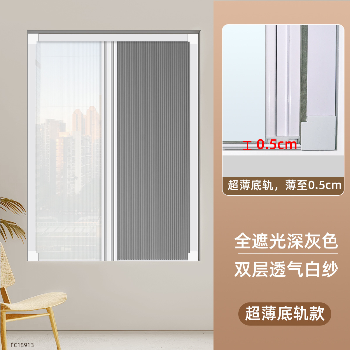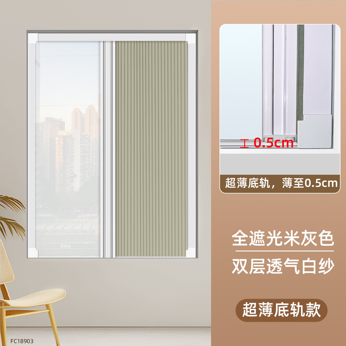 • [초박형 바닥 레일 모델] 완전 암막 다크 그레이 FC18913 + 이중 통기성 흰색 거즈