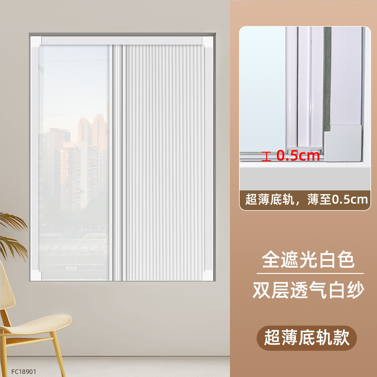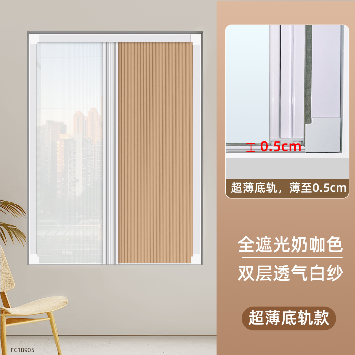 • [초박형 바닥 레일 모델] 완전 암막 밀크 커피 컬러 FC18905 + 이중 통기성 흰색 거즈