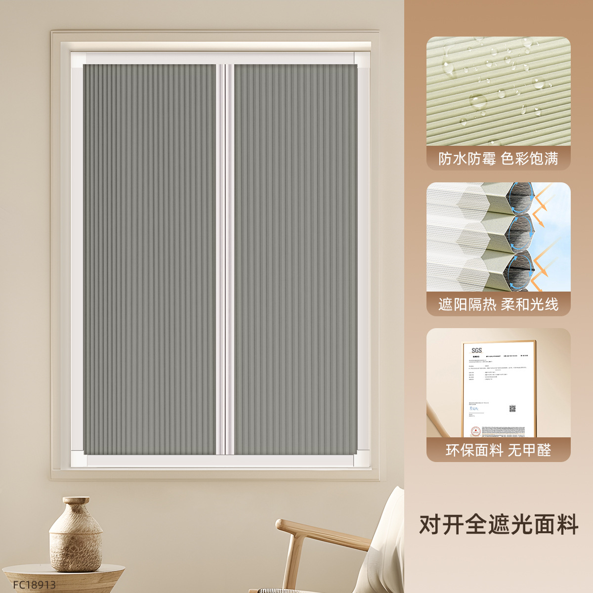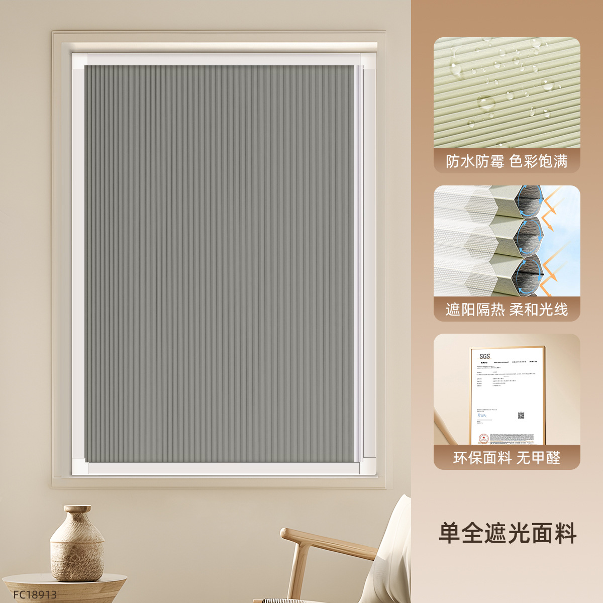 • [차양 및 단열] 완전 암막 다크 그레이 FC18913 + 이중 통기성 흰색 거즈