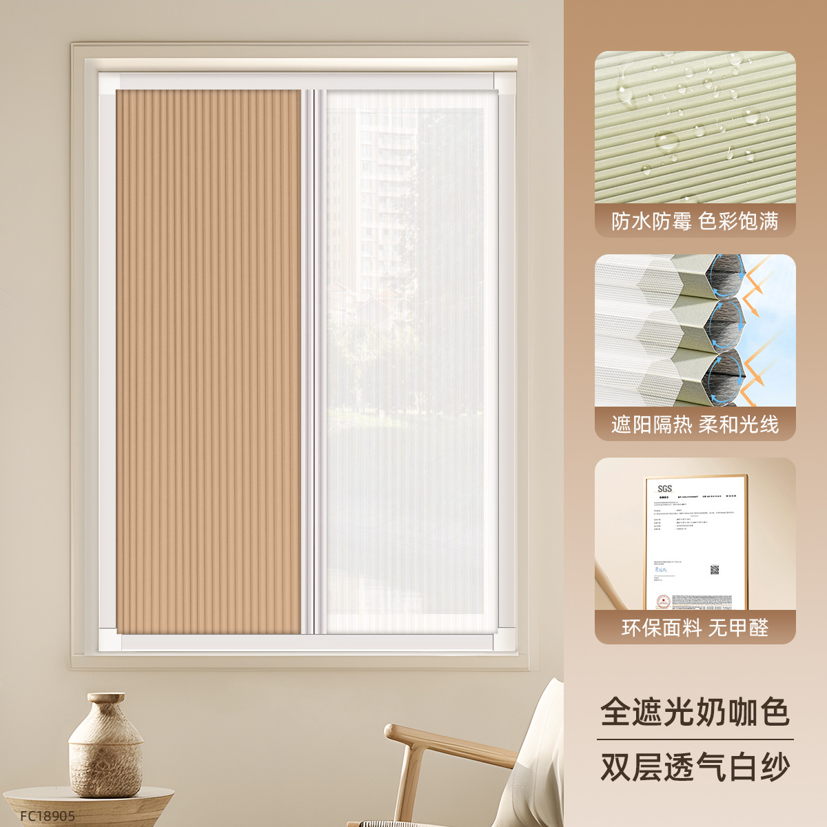 • [차양 및 보온] 완전 암막 밀크 커피 컬러 FC18905 + 이중 통기성 흰색 거즈