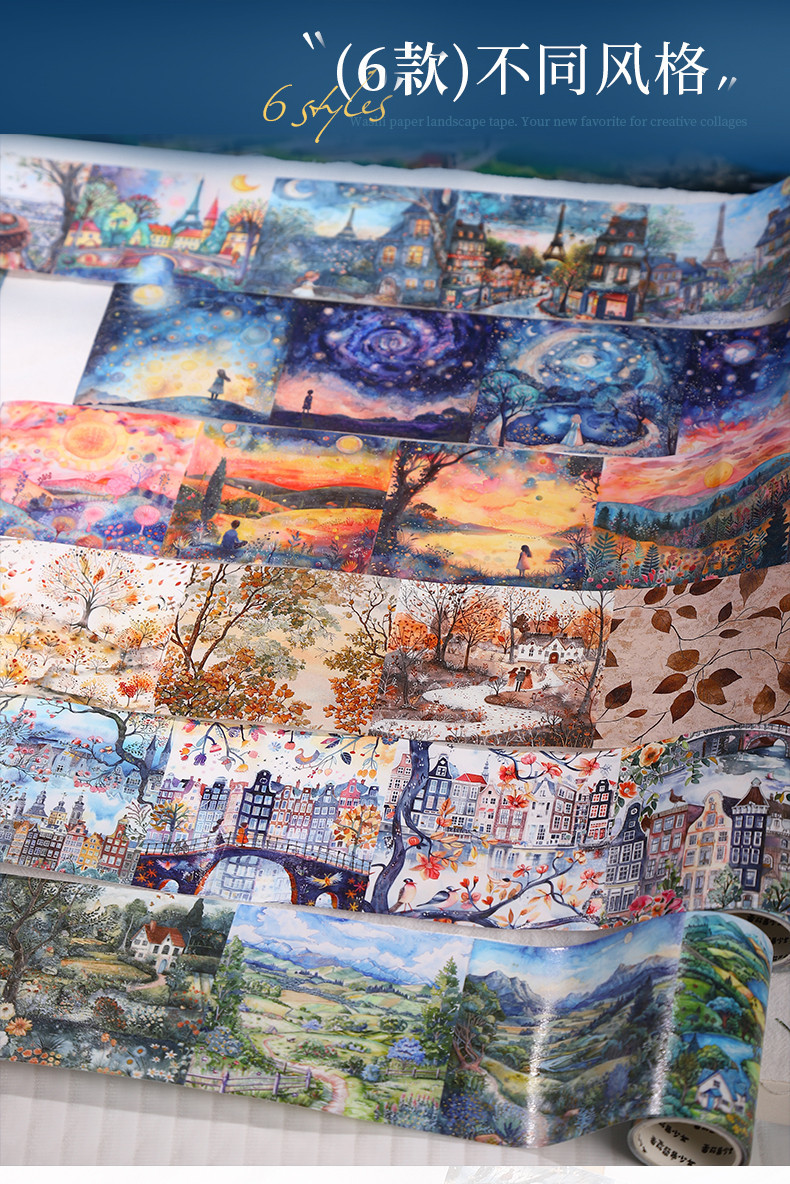 치유의 여정 대형 조경 테이프 판타지 타운 스토리 장면 핸드북 콜라주 배경 소재 장식스토어 가기