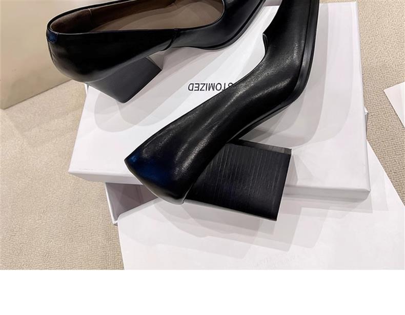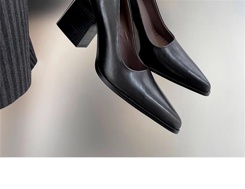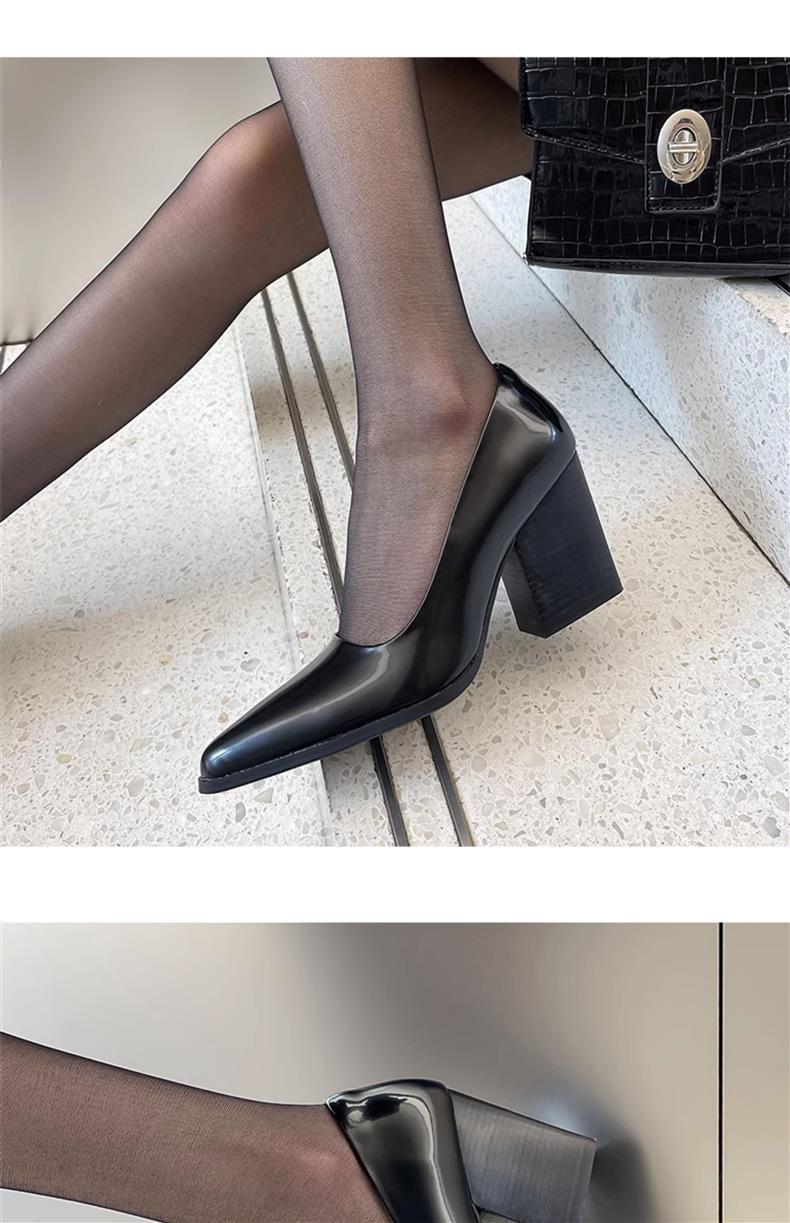 슬립온~2025 봄 신상 레트로 포인티드 토 8cm 두꺼운 굽 여성용 하이힐, 활용도 높은 통근화스토어 가기
