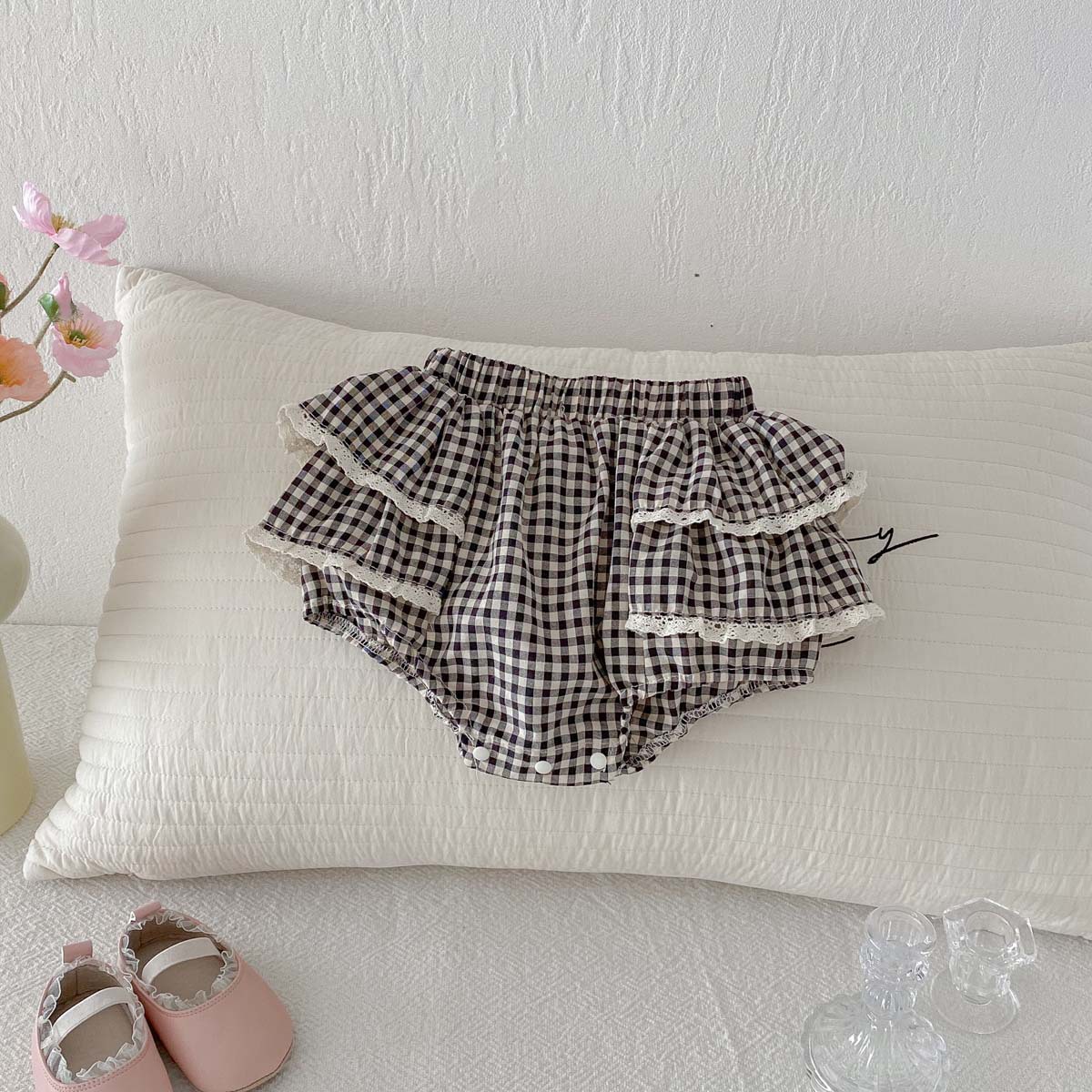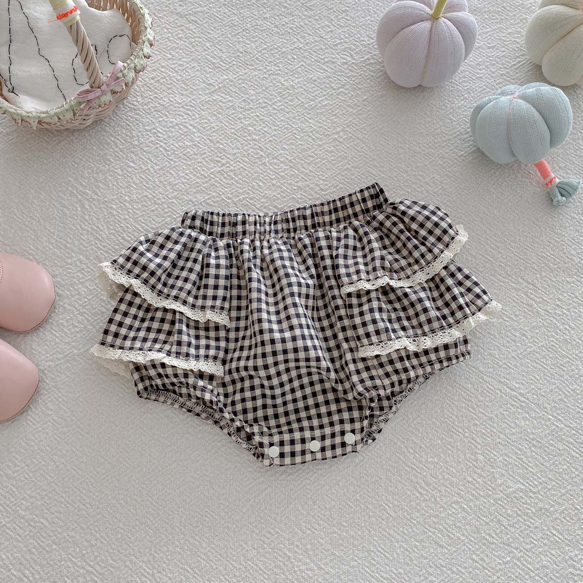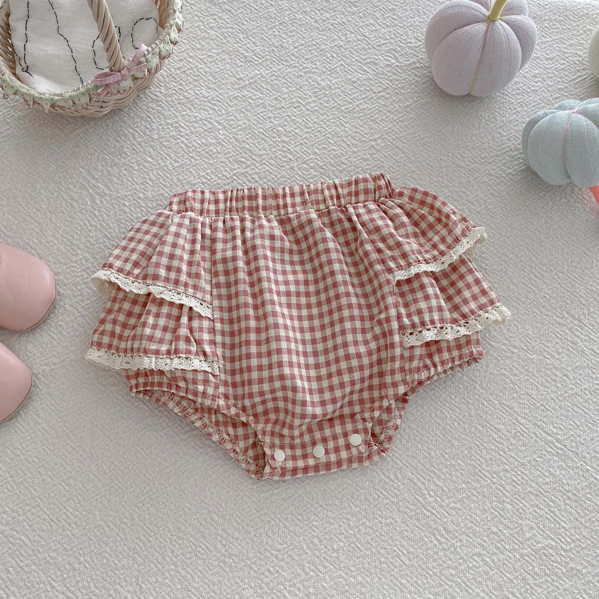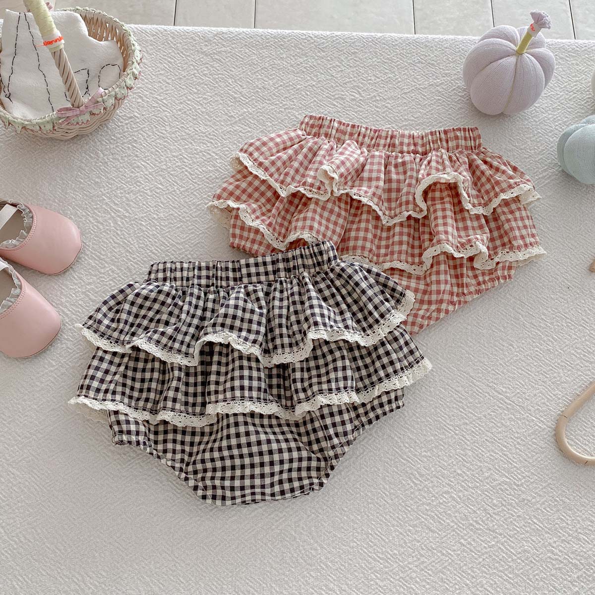아기 소녀 여름 격자 무늬 레이스 버드 바지 유아 및 어린이를위한 반바지 달콤한 케이크 바지 다목적 바지