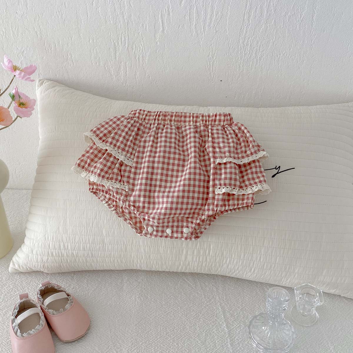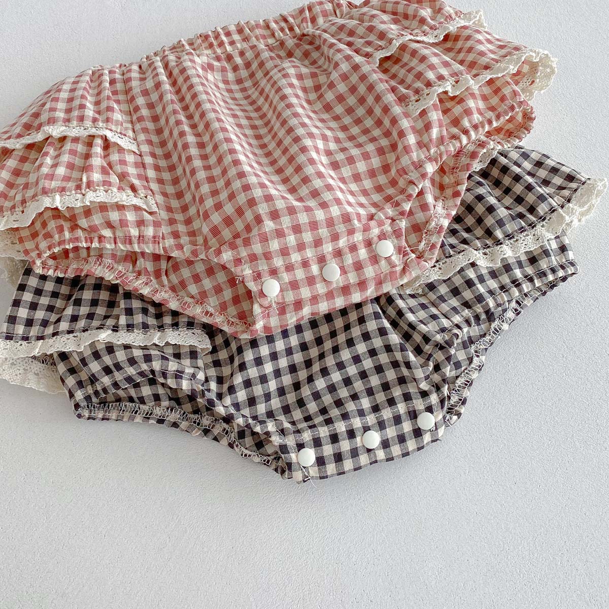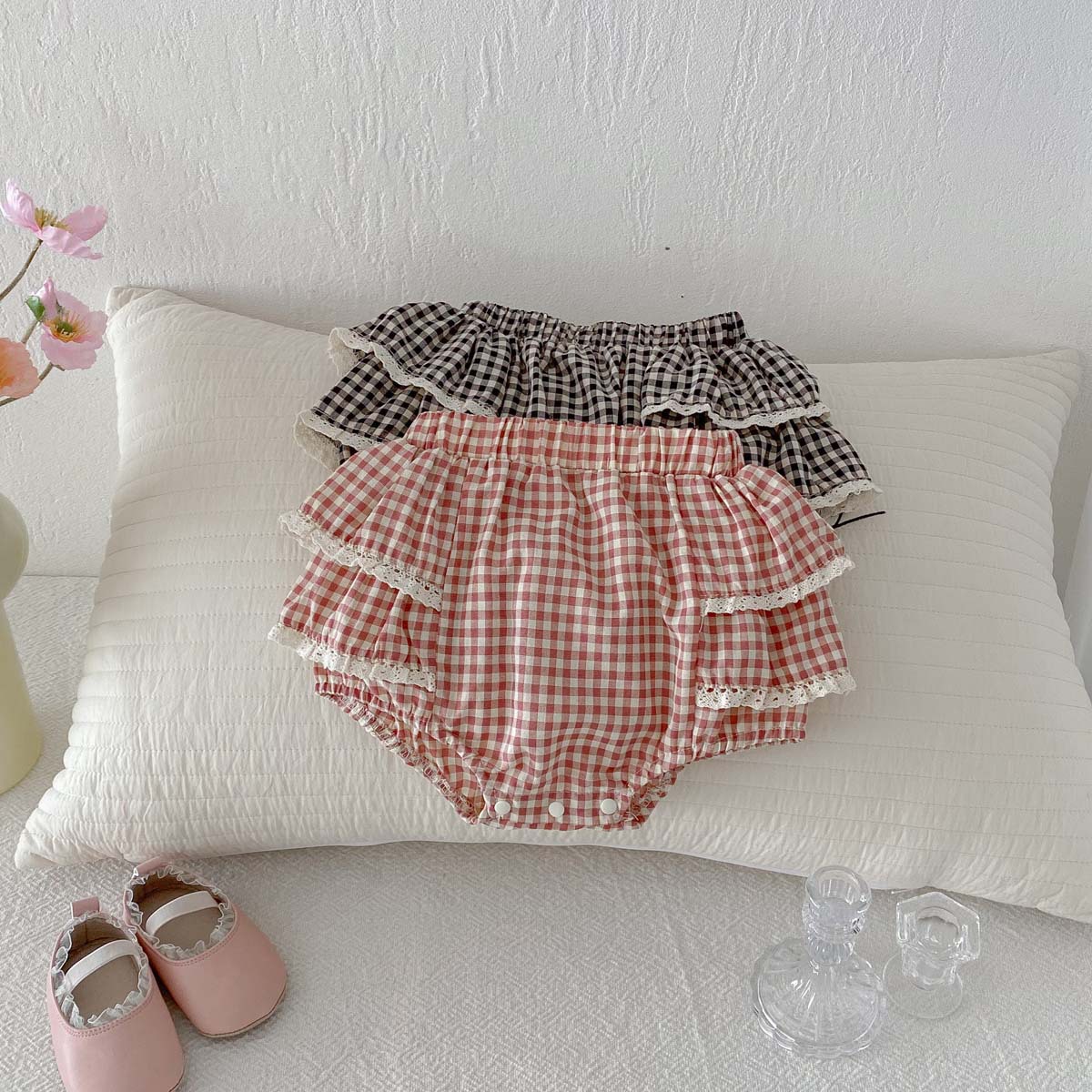 아기 소녀 여름 격자 무늬 레이스 버드 바지 유아 및 어린이를위한 반바지 달콤한 케이크 바지 다목적 바지