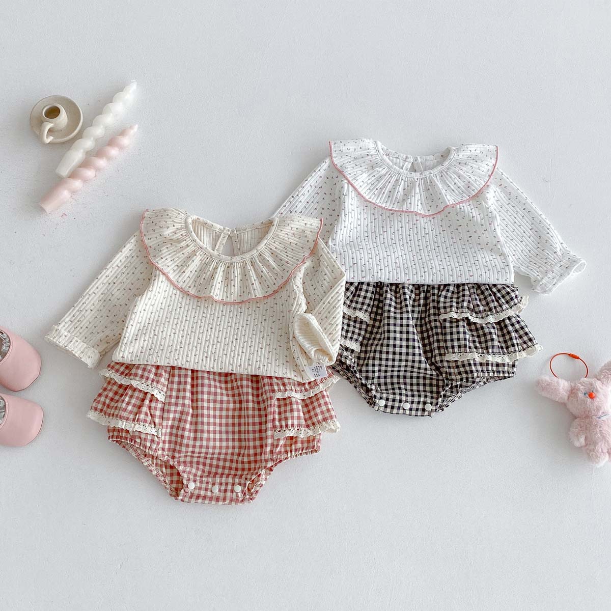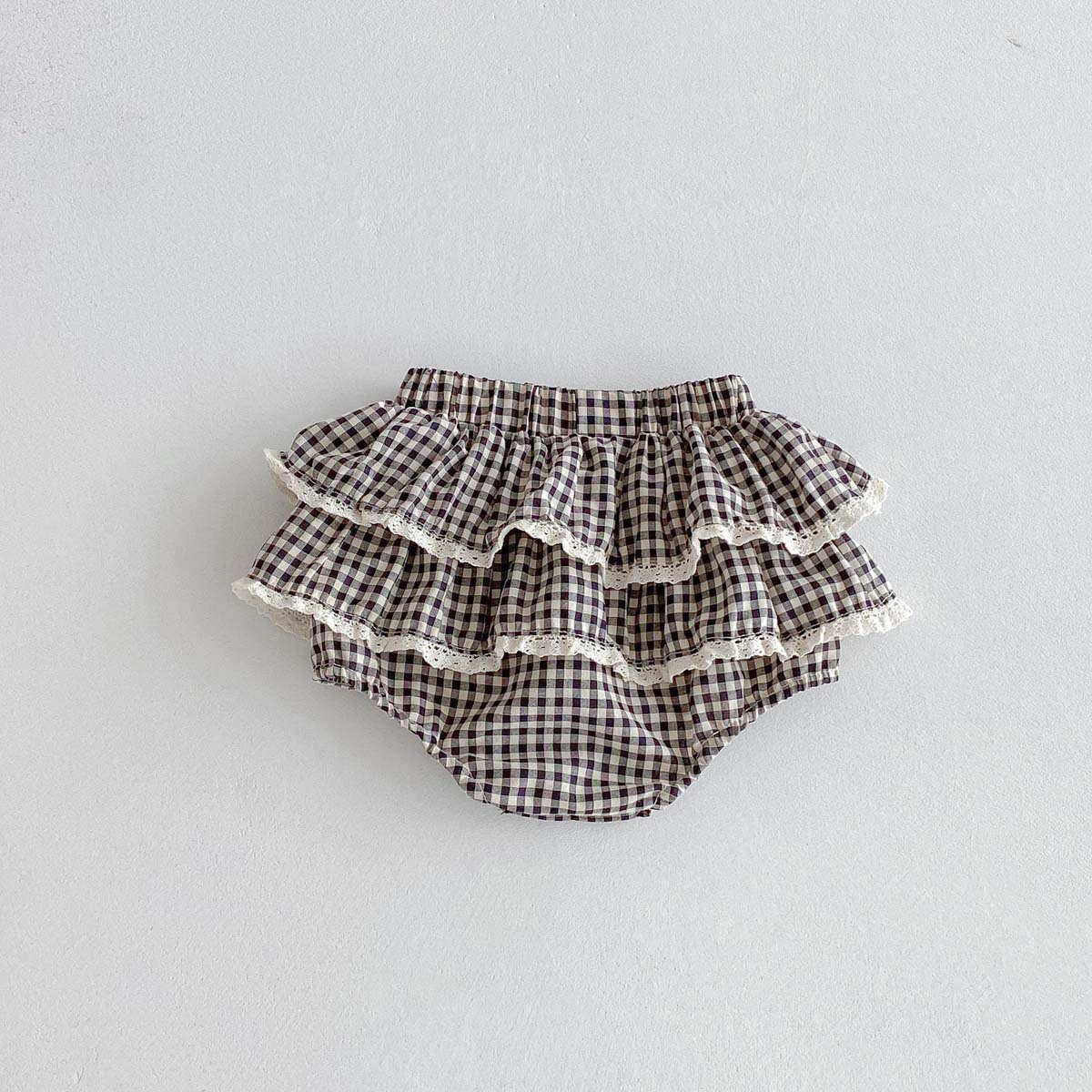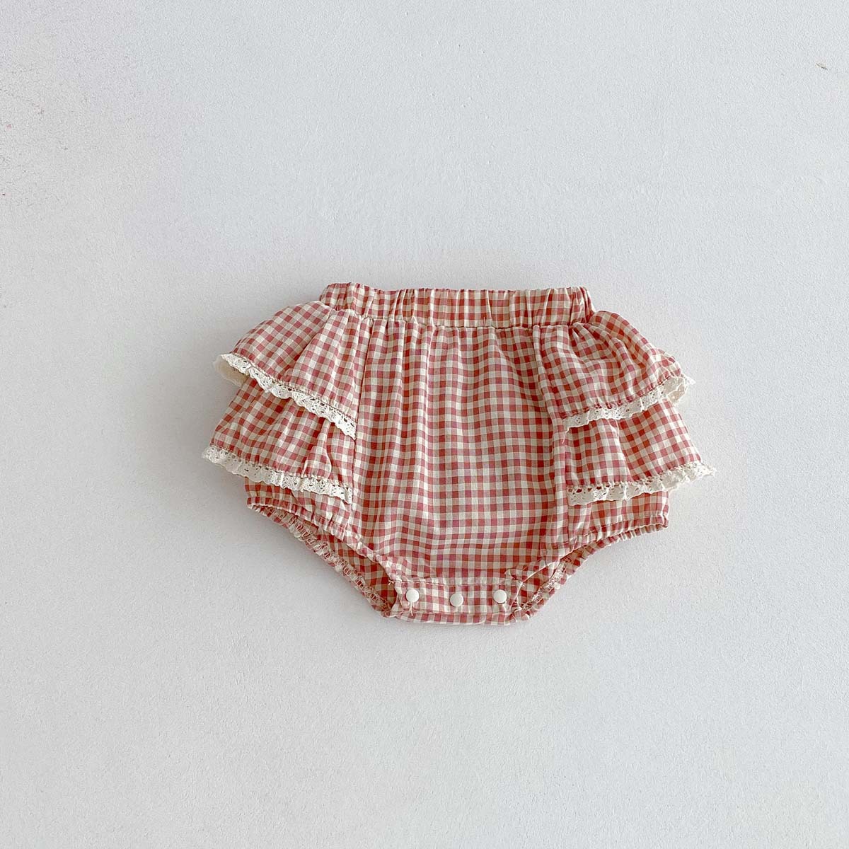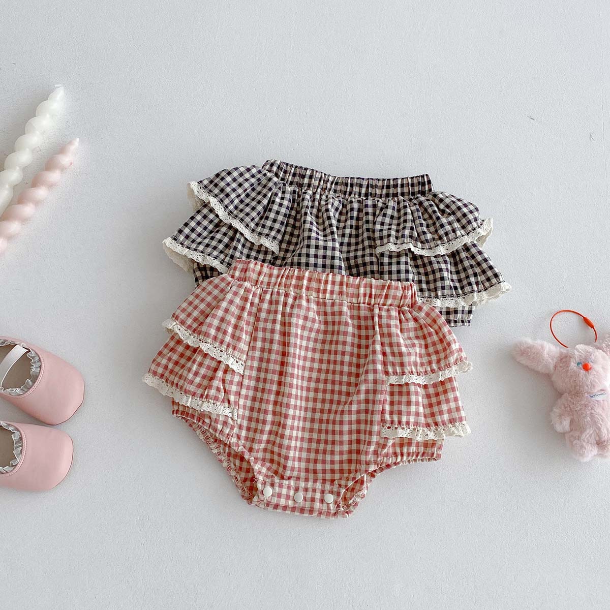 아기 소녀 여름 격자 무늬 레이스 버드 바지 유아 및 어린이를위한 반바지 달콤한 케이크 바지 다목적 바지