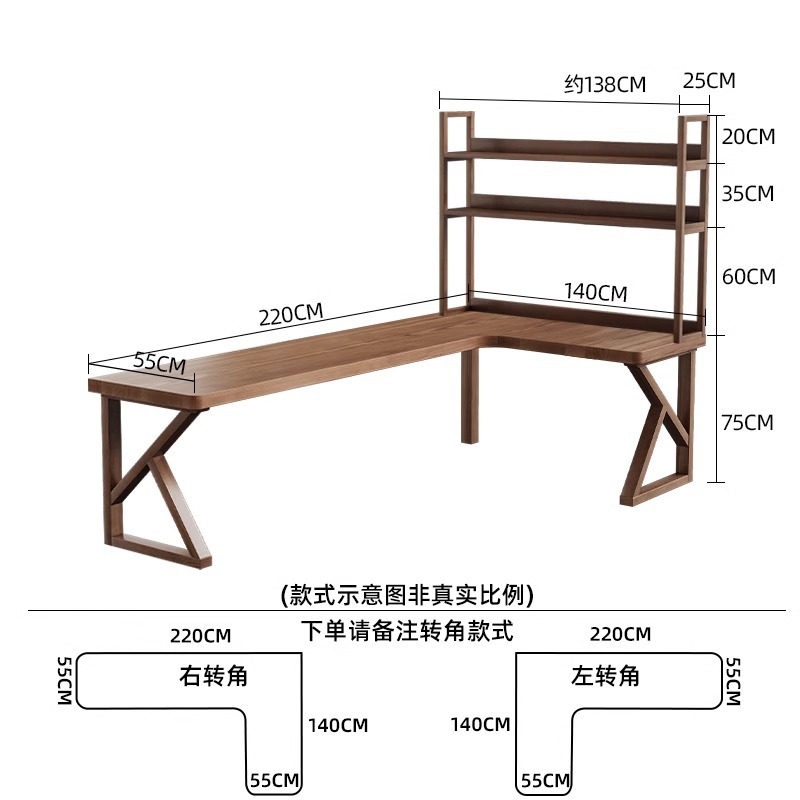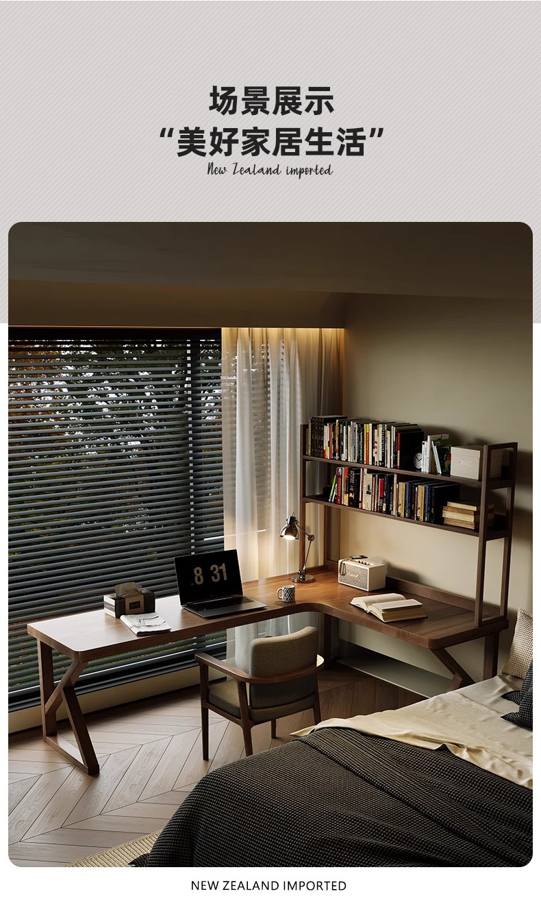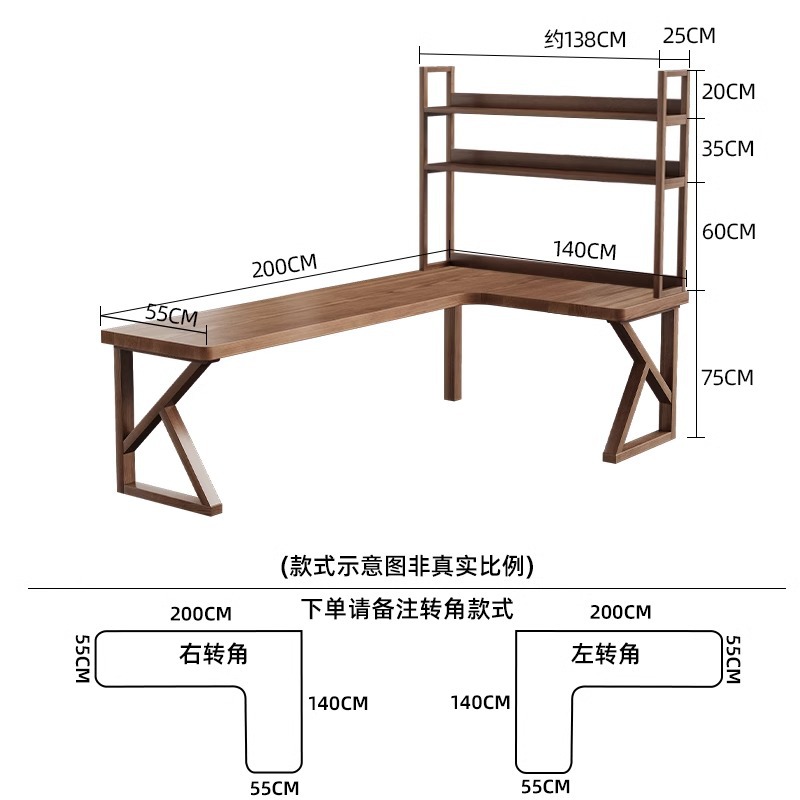 현대적인 미니멀리스트 단단한 나무 더블 코너 책상 책장 통합 L 자형 컴퓨터 책상 침실 학습 홈 오피스 책상스토어 가기