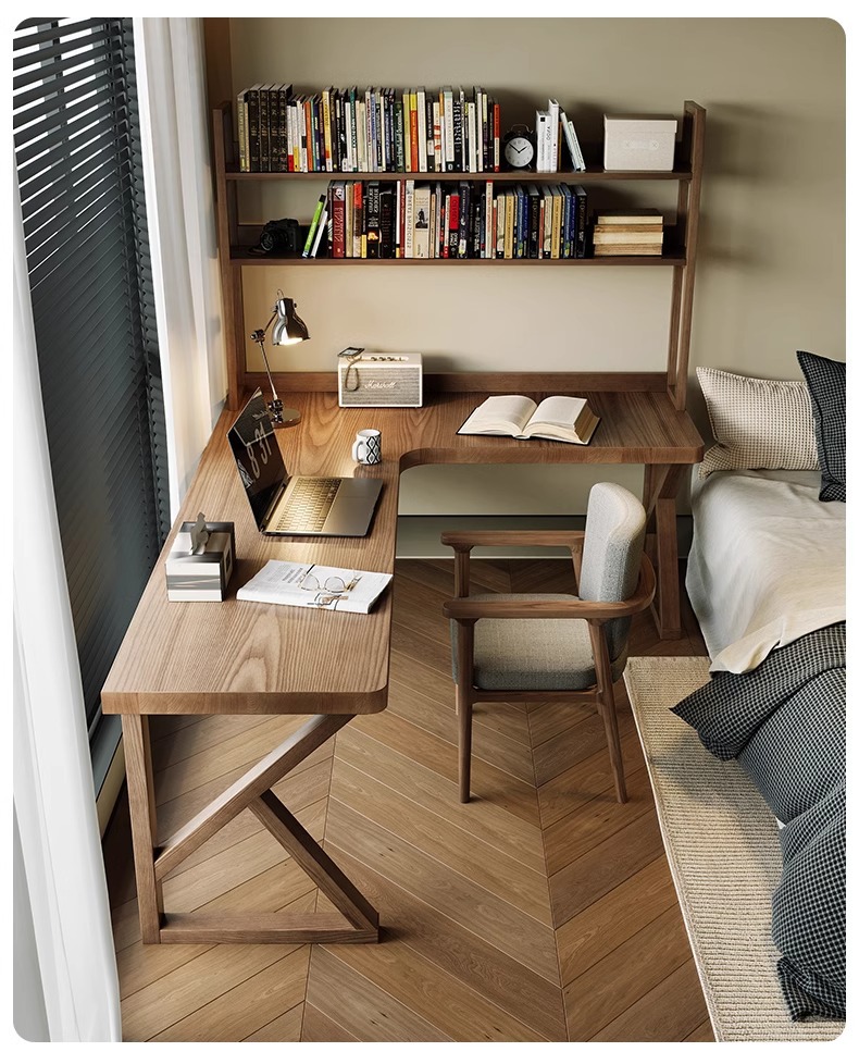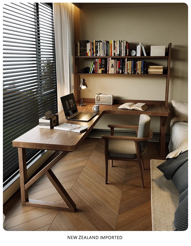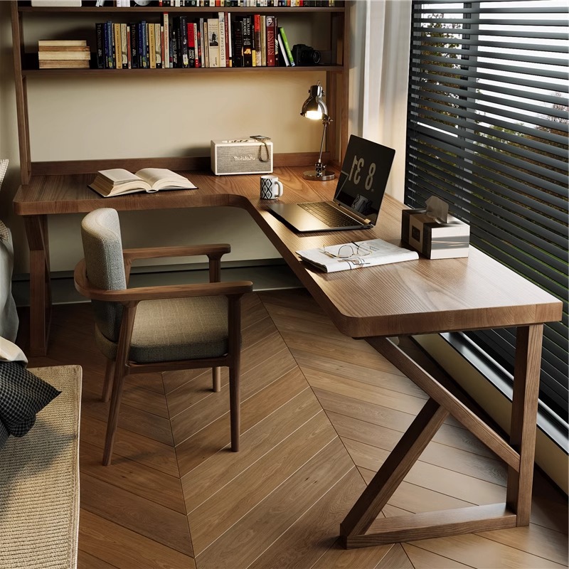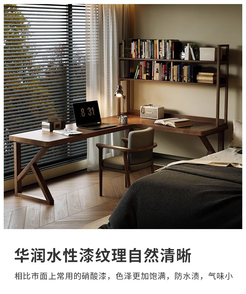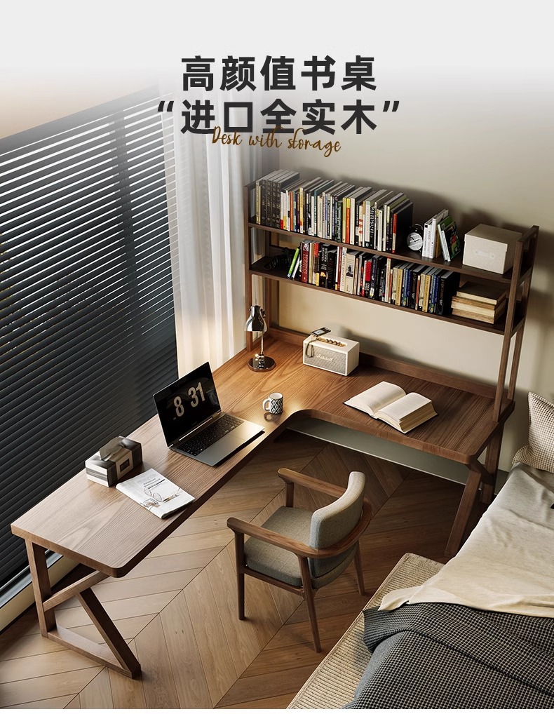 현대적인 미니멀리스트 단단한 나무 더블 코너 책상 책장 통합 L 자형 컴퓨터 책상 침실 학습 홈 오피스 책상