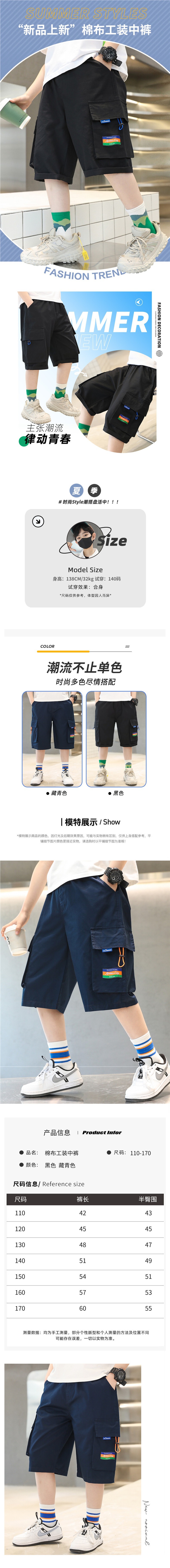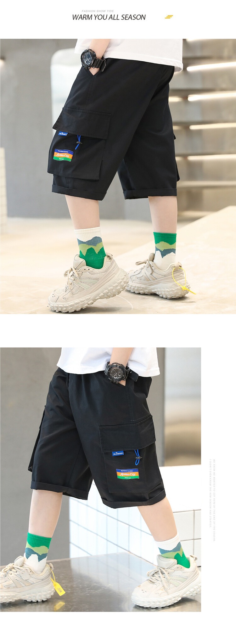 남아 캐주얼 반바지, 여름 큰아동용 얇은 아동 작업복, 7부 중간바지, 남아 스포츠 7부 바지, 트렌디한 아우터웨어스토어 가기