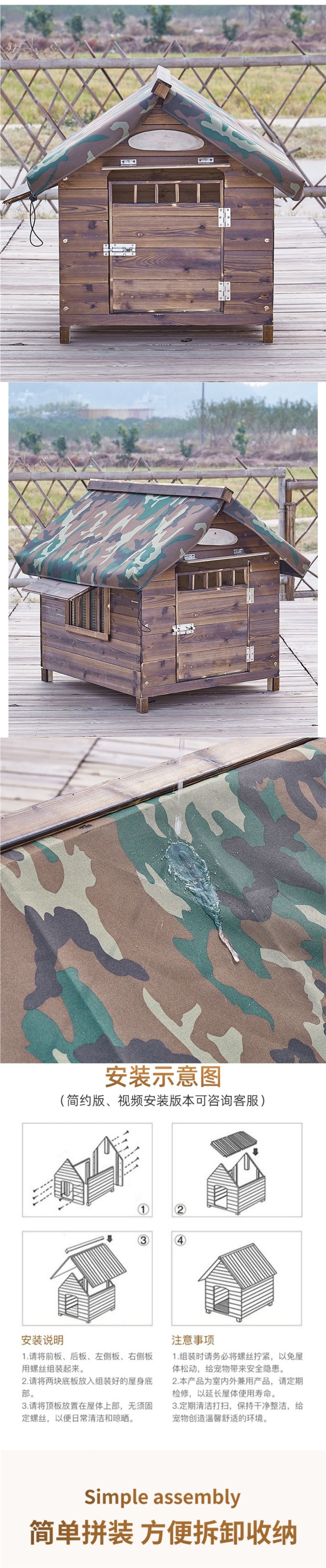 나무 개집 단단한 나무 개집 방수 및 방수 사계절 개집 고양이 둥지 고양이 집 애완 동물 둥지 개집스토어 가기