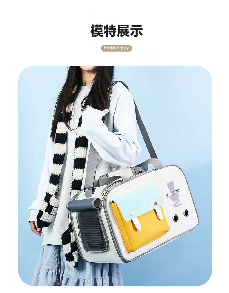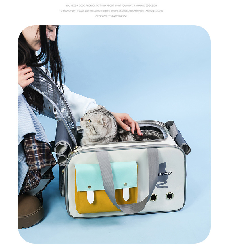 고양이 가방 휴대용 만화 통기성 경량 애완 동물 용품 대용량 휴대용 걸이 가능한 트롤리 어깨 고양이 가방