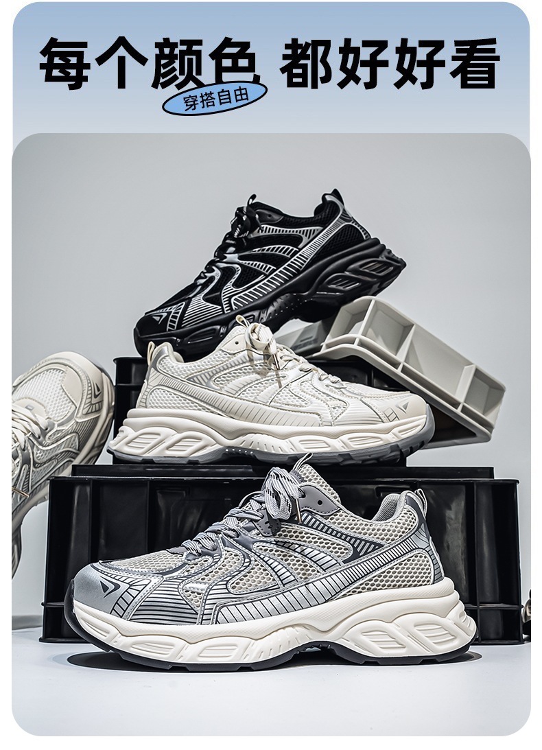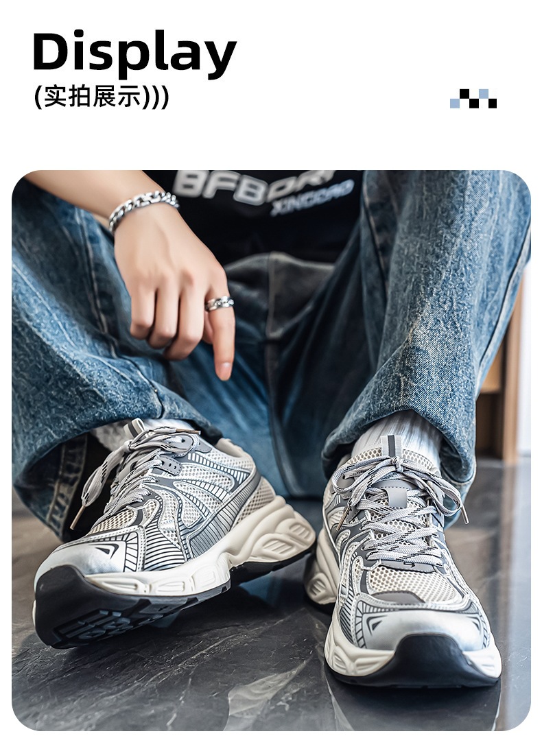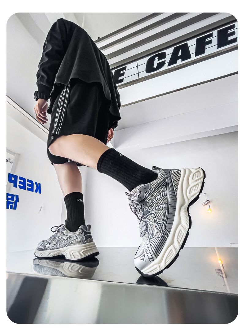 남성 신발 여름 새로운 통기성 메쉬 청소년 두꺼운 밑창 스포츠 러닝 캐주얼 아빠 유행 신발스토어 가기