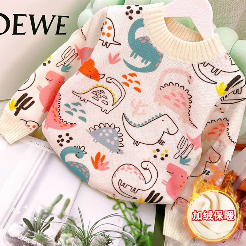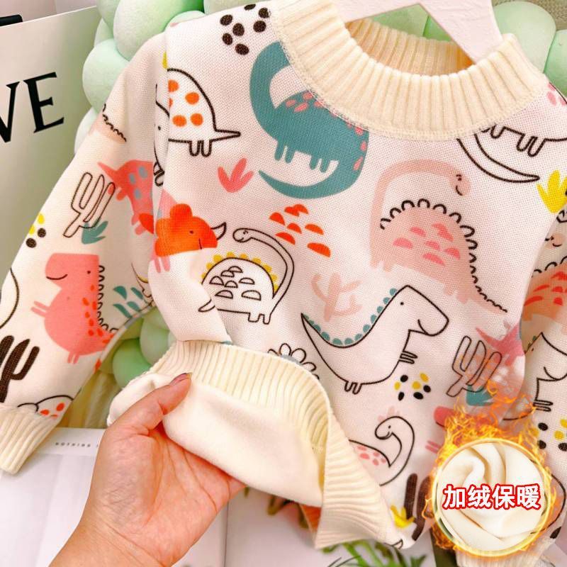 어린이 따뜻한 스웨터 가을, 겨울 소년과 소녀를위한 새로운 스타일의 벨벳 두꺼운 니트 바닥 셔츠 한국 스타일 외국 스타일 베이비 탑스토어 가기