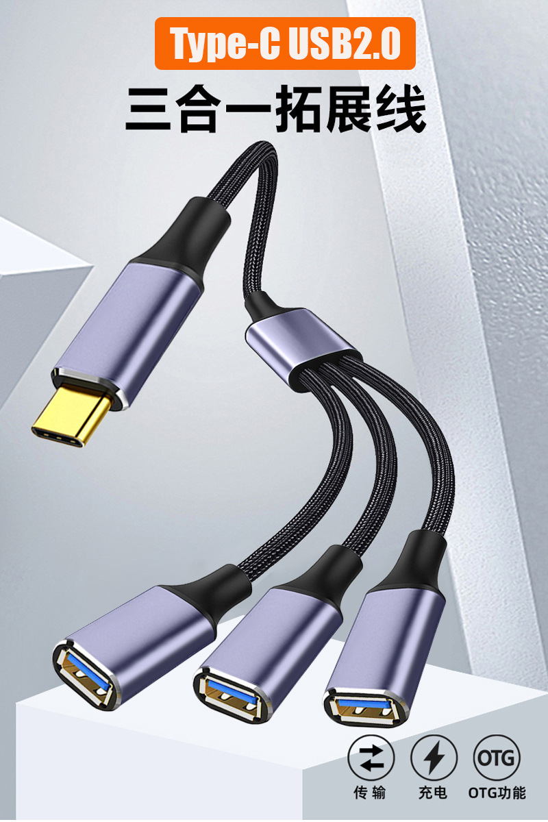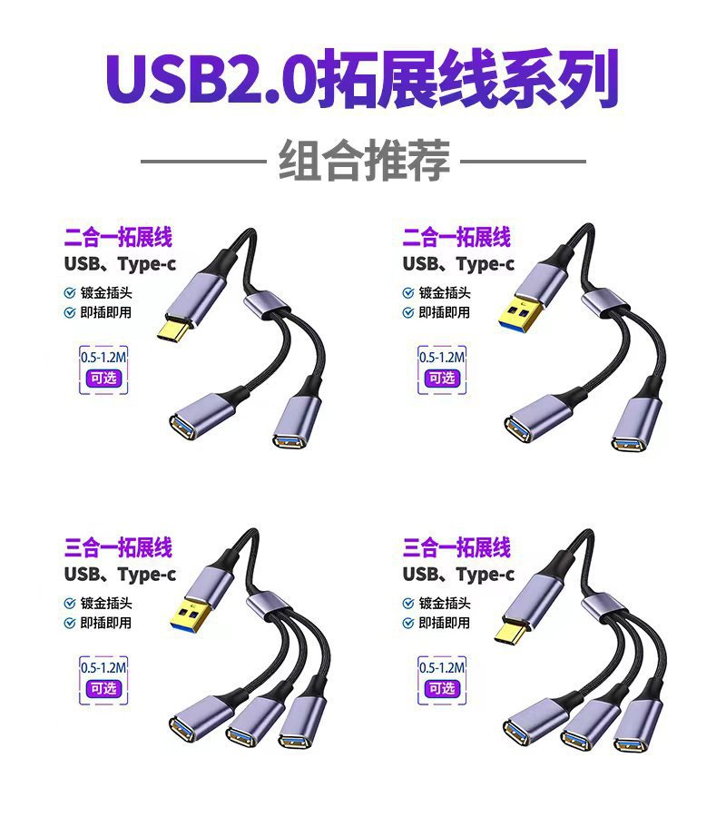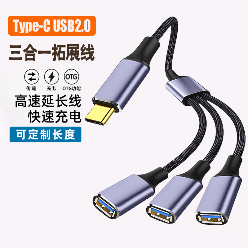 새로운 USB2.0 3-in-1 허브 확장 케이블 USB 데이터 전송을 지원하는 2-in-1 확장 케이블스토어 가기