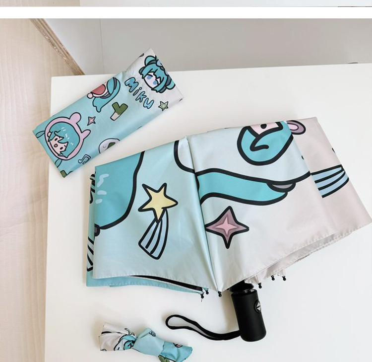 일본 하츠네 미쿠 팬 주변기기 구미통 우산 귀여운 Q 버전 자외선 차단 자동 접이식 Qinxuan