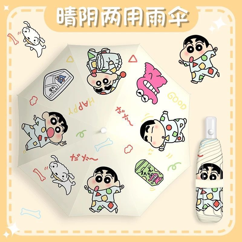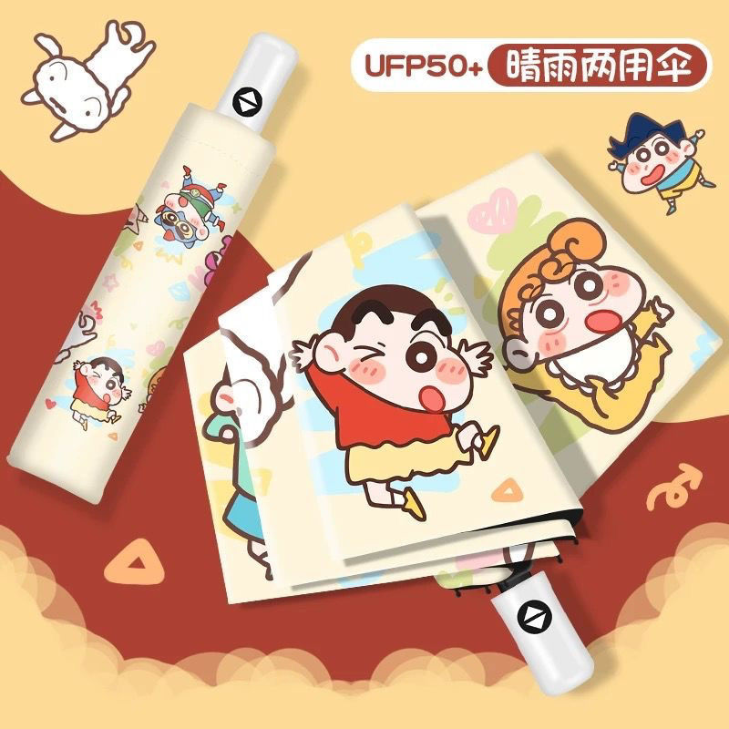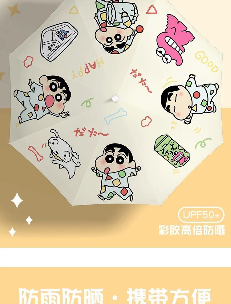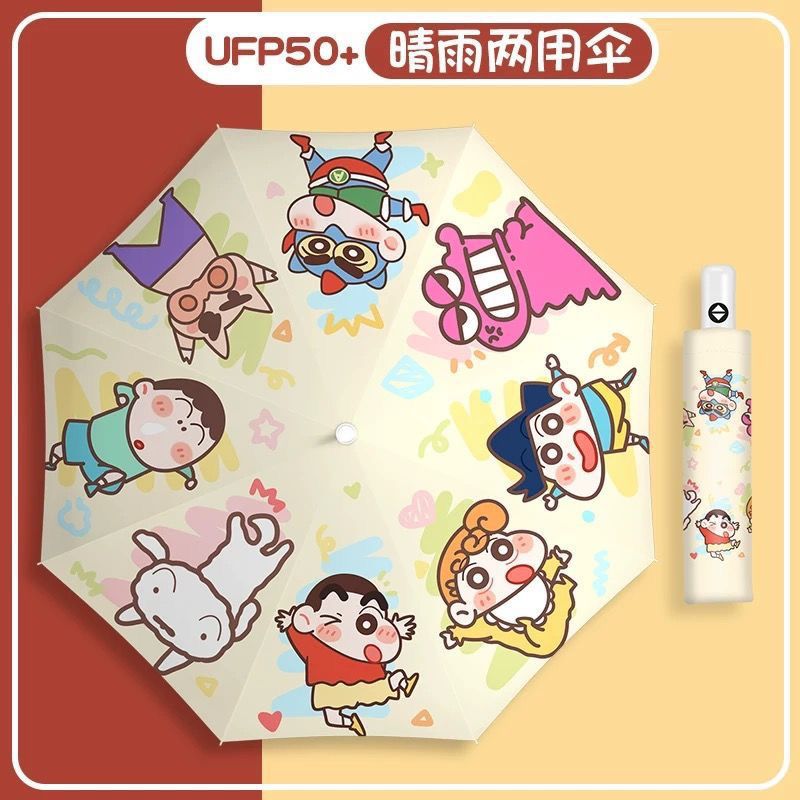 크레용신짱 우산 여성용 햇빛과 비가 오는 우산 이중 목적 태양 우산 자외선 차단 UV 차양 우산 작고 휴대 가능하며 귀여운
